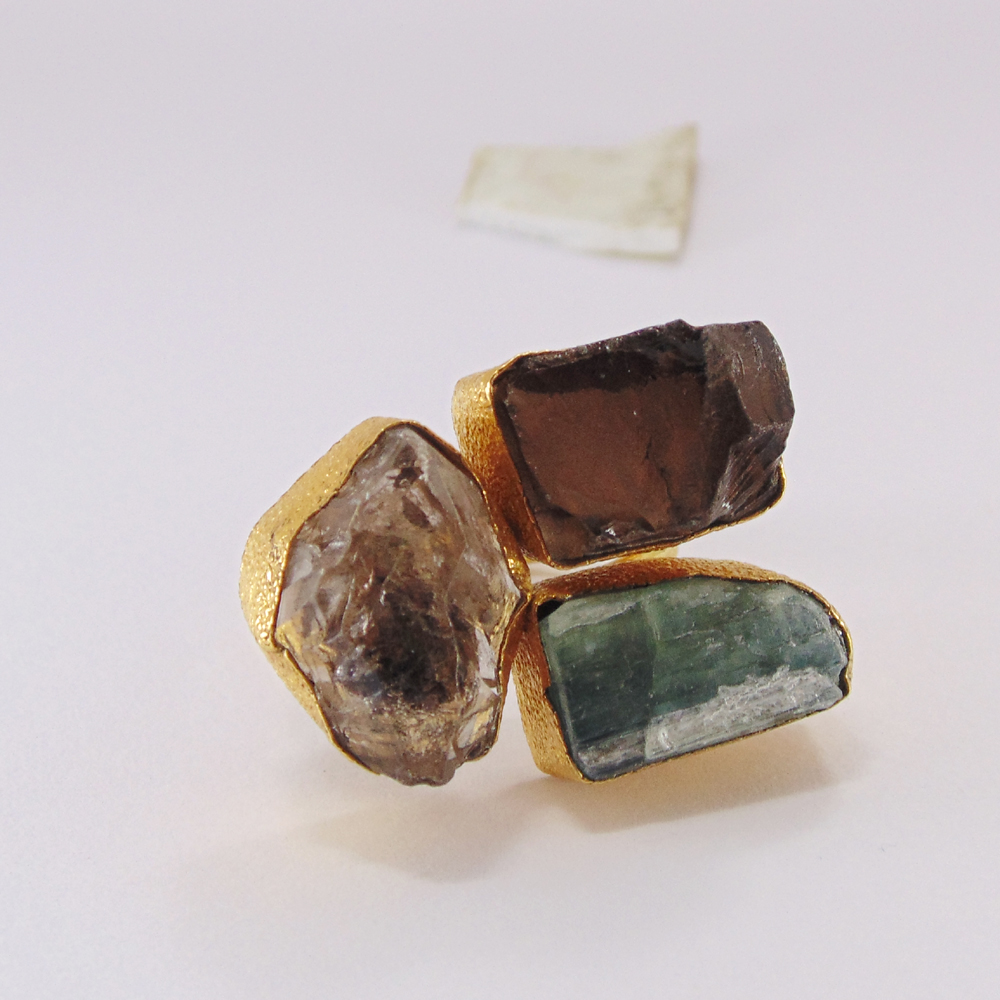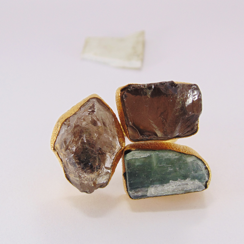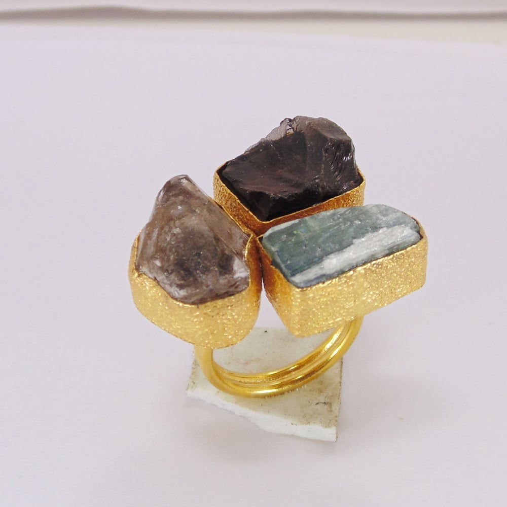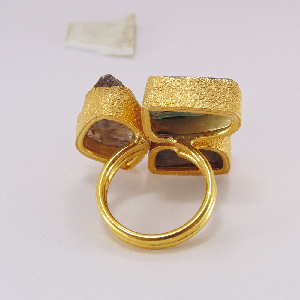 Herkimar Diamond Ring, Handmade Gold Plated Brass Fashion Ring, Designer Natural Gemstone Ring