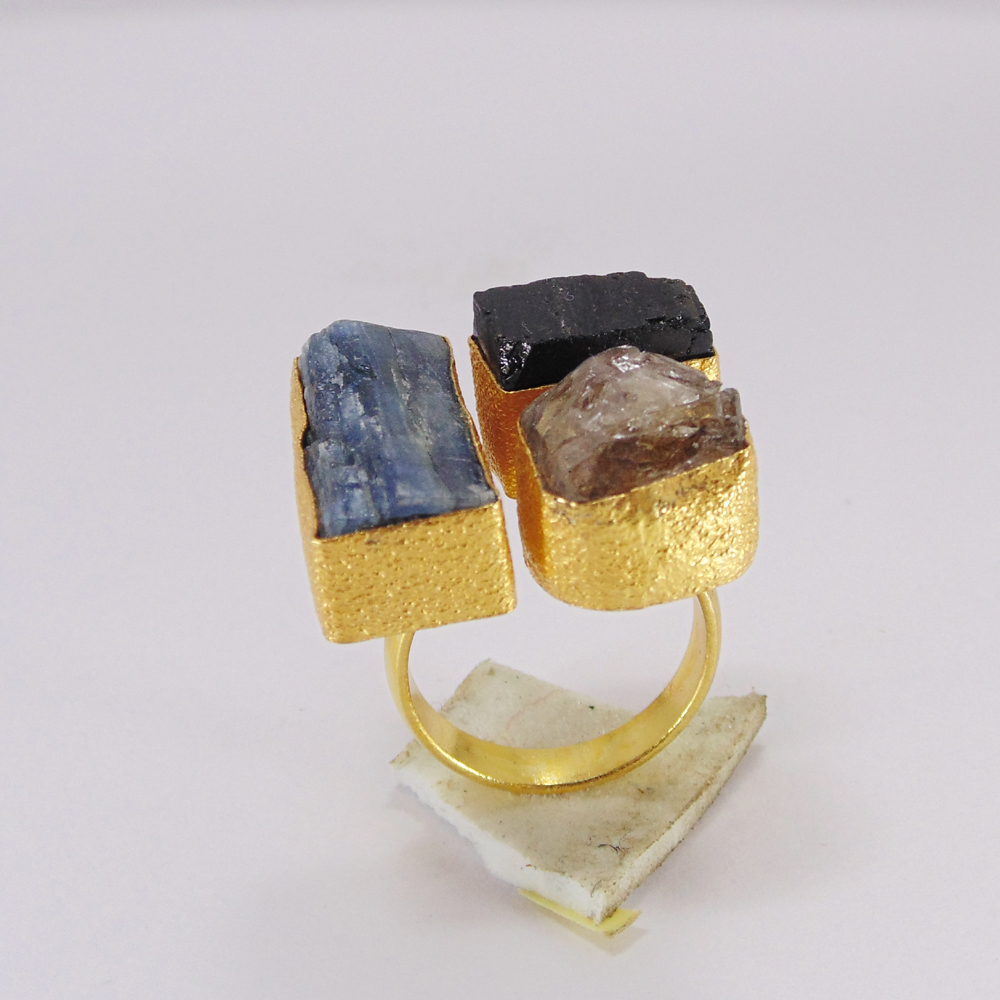 Natural Raw Gemstone 18k Gold Plated Handmade Ring Jewelry