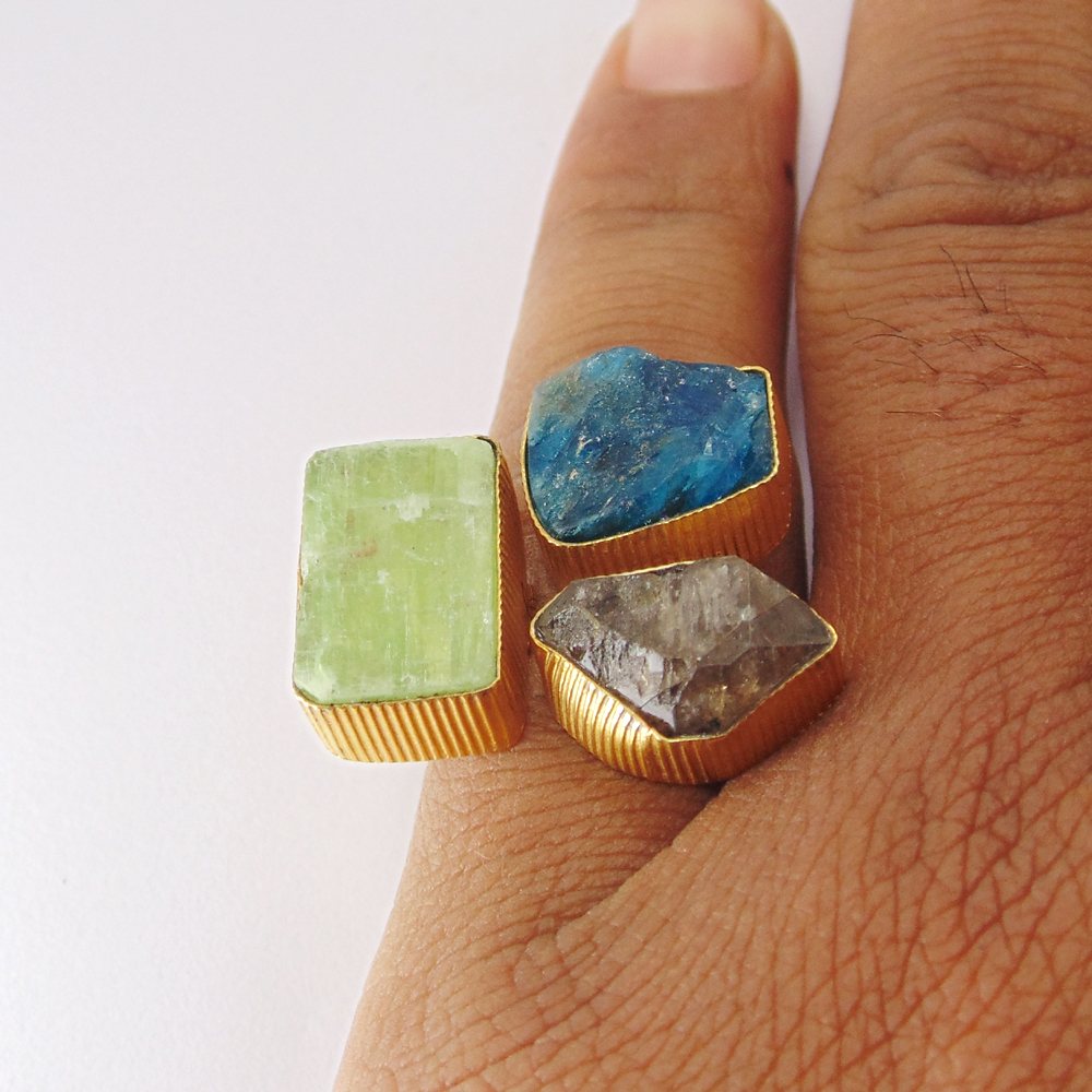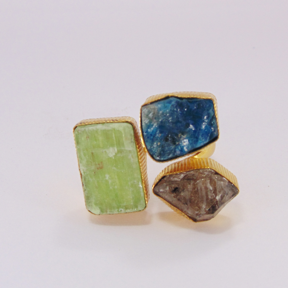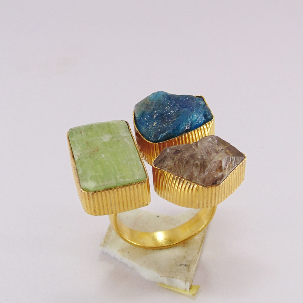 Natural Raw Gemstone 18k Gold Plated Handmade Ring Jewelry
