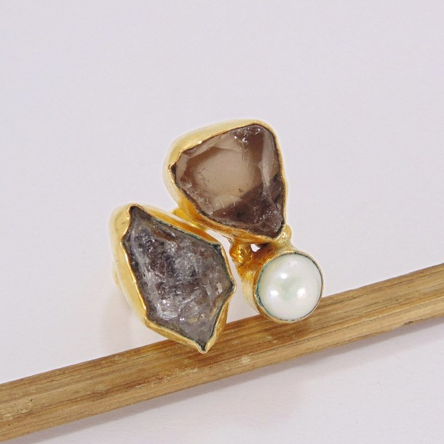 Herkimer Diamond Ring - Yellow Gold Plated Ring - Handmade Ring - Adjustable Ring - Fashion Ring - Black Tourmaline Ring - Designer Ring Product DetailsItem Code: BR-0139Gross Wt. 8.50 GmsStone Name