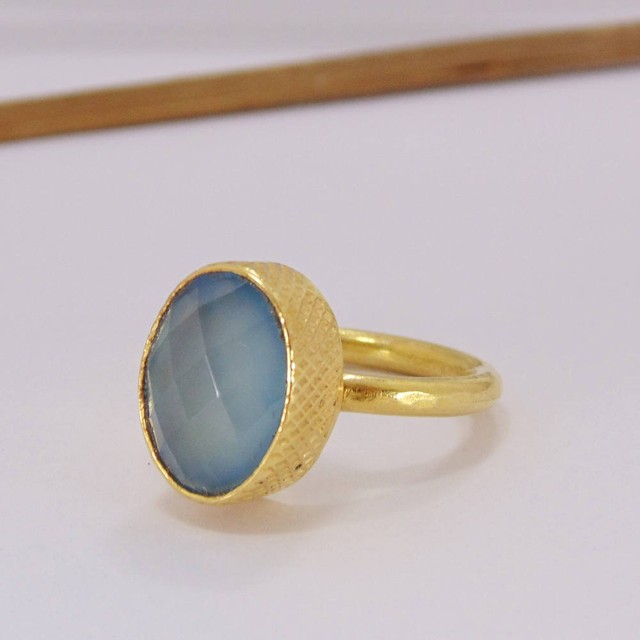 Handmade Blue Chalcedony Semi-Precious Stone Ring
