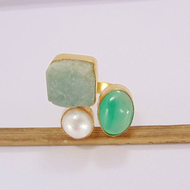 Product DetailsItem Code: AJBR-0123Gross Wt. 9.460 GmsStone Name: Green Onyx, Fluorite, PearlMetal: Yellow Gold Plated Over BrassRing Sizes: Please choose from drop down menu. If you do not see your finger size, select custom and I'll make a ring just for you