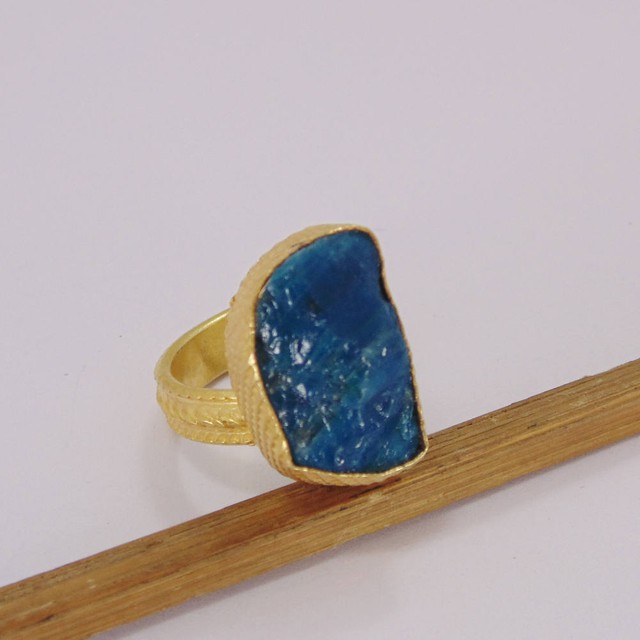 Handmade Blue Apatite Gold Vermei Mid Finger Ring For Women