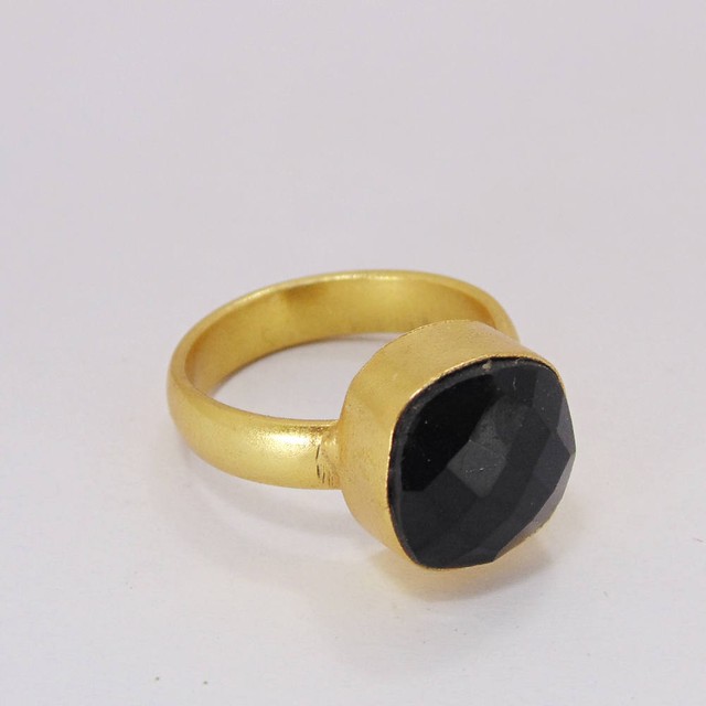Product DetailsItem Code: BR-0258Gross Wt. 5.980 GmsStone Name: Black OnyxMetal: Yellow Gold Plated Over BrasRing Sizes: Please choose from drop down menu. If you do not see your finger size, select custom and I'll make a ring just for you! :