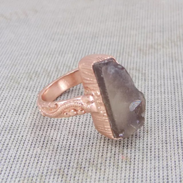 Handmade Raw smokey quartz Bezel Set Adjustable Ring For Women