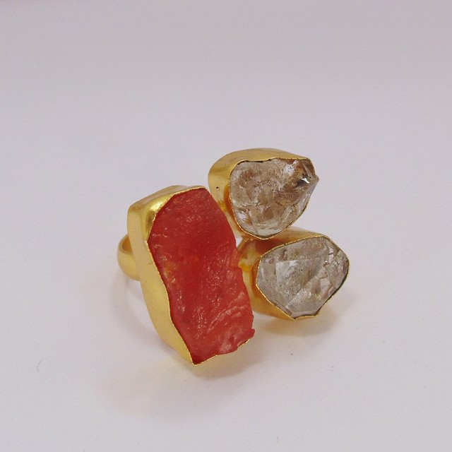 Handmade Yellow Gold Plated Carnelian Ring For Women