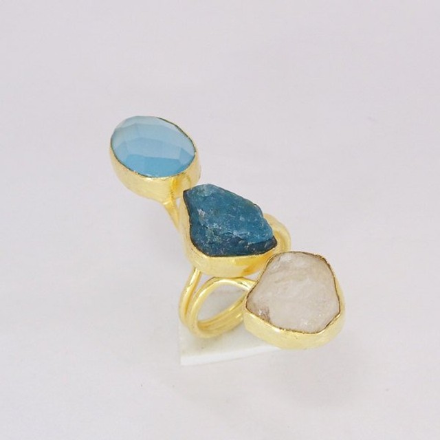 Handcrafted Gold Vermeil Raw Kyanite And Citrine Gemstone Cocktail Ring
