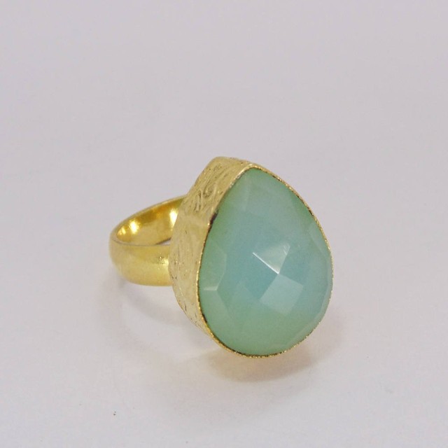 Handmade Modern Blue Chalcedony Gemstone Stackable Rings For women