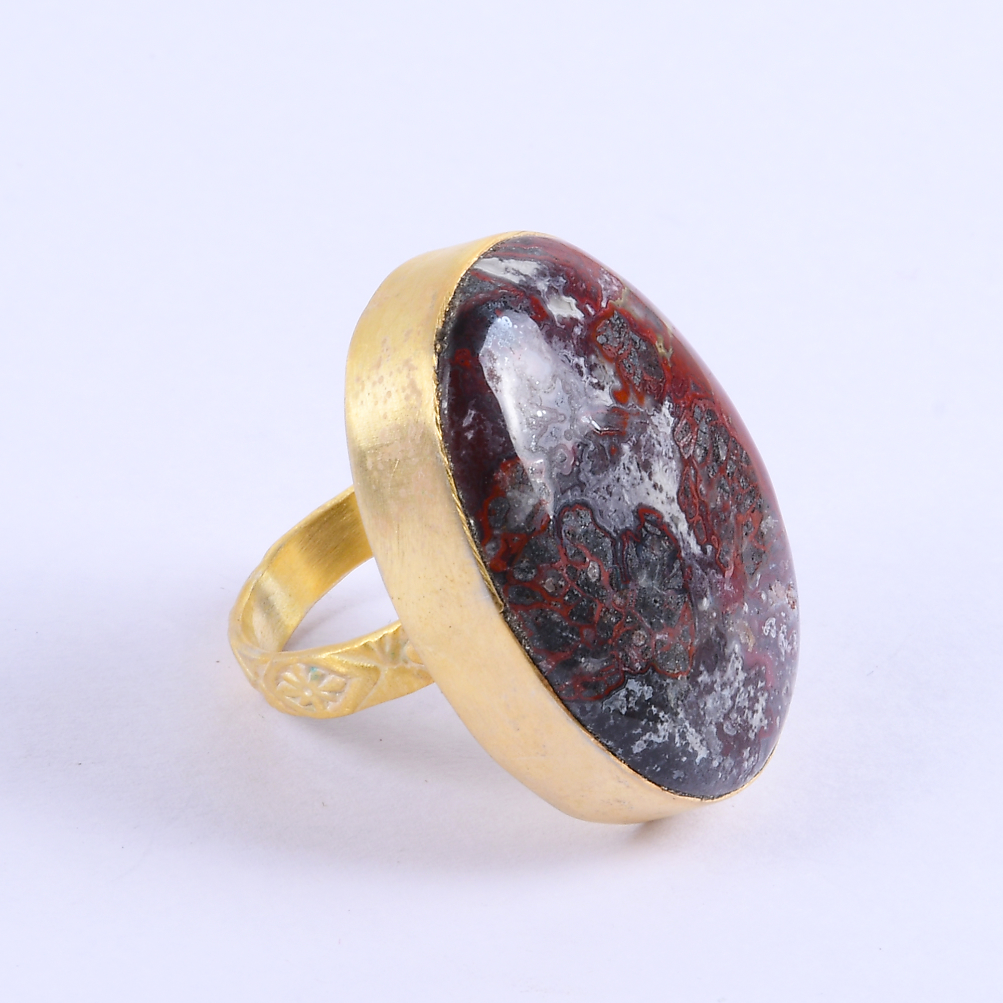 18K Yellow Gold Plated Ring, Crazy Lace Agate Ring, Oval Gemstone Ring, Bezel Set Ring, Unique Handmade Ring, Statement Ring For Women