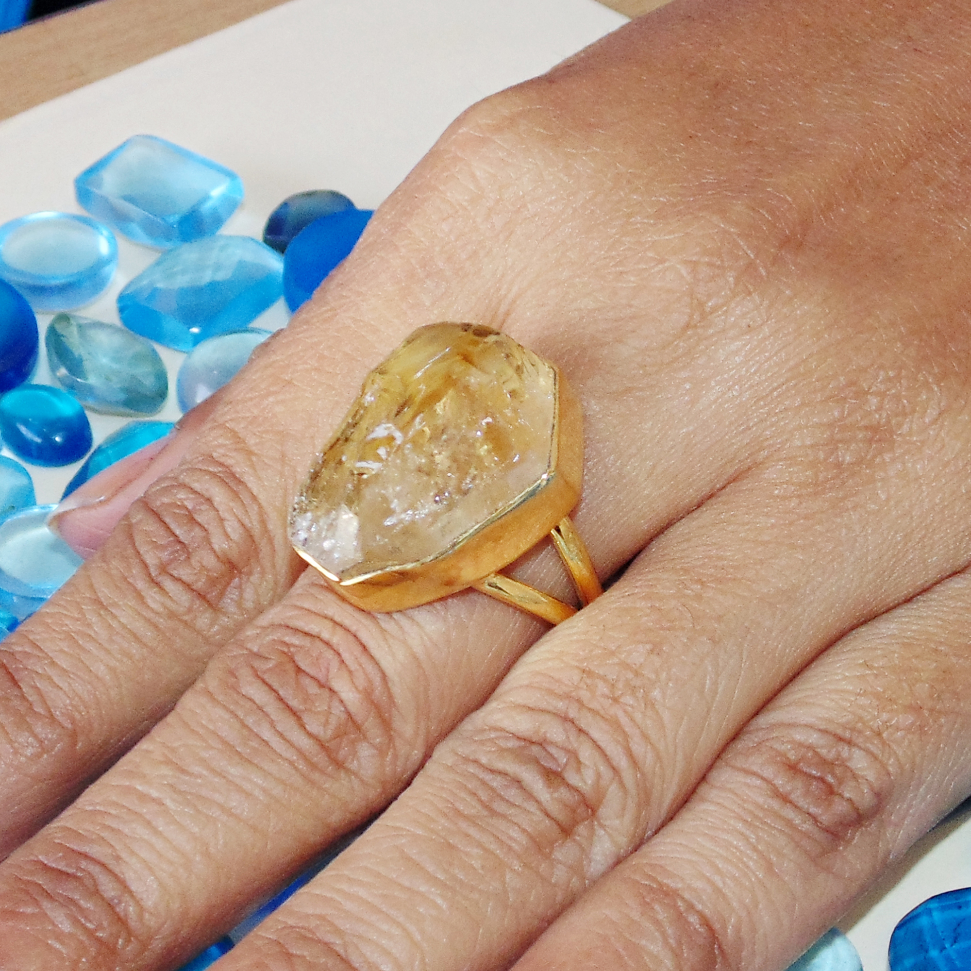 18K Gold Plated Raw Citrine Birthstone Fashion Ring