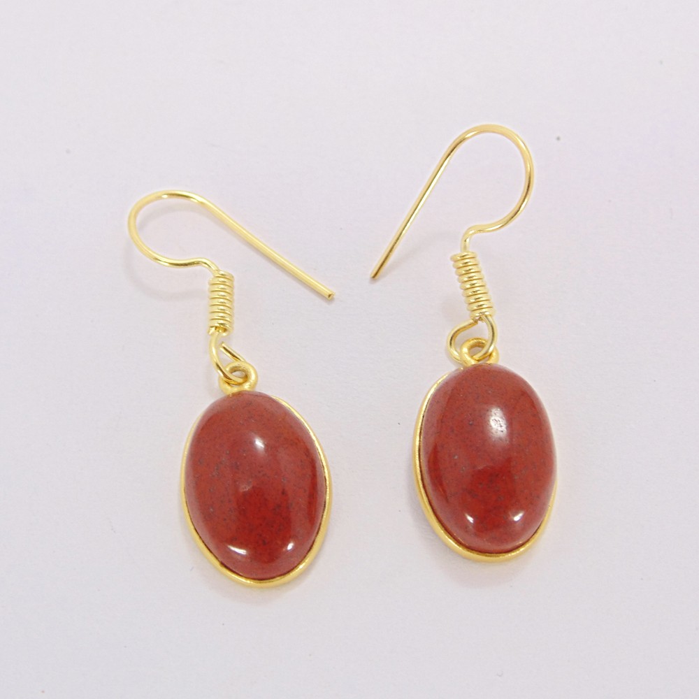 Red Aventurine Gemstone Earrings - Oval Shape Stone Earrings - Natural Gemstone Earrings - Dainty Gold Earrings - Drop Earrings - Women Birthday Gift