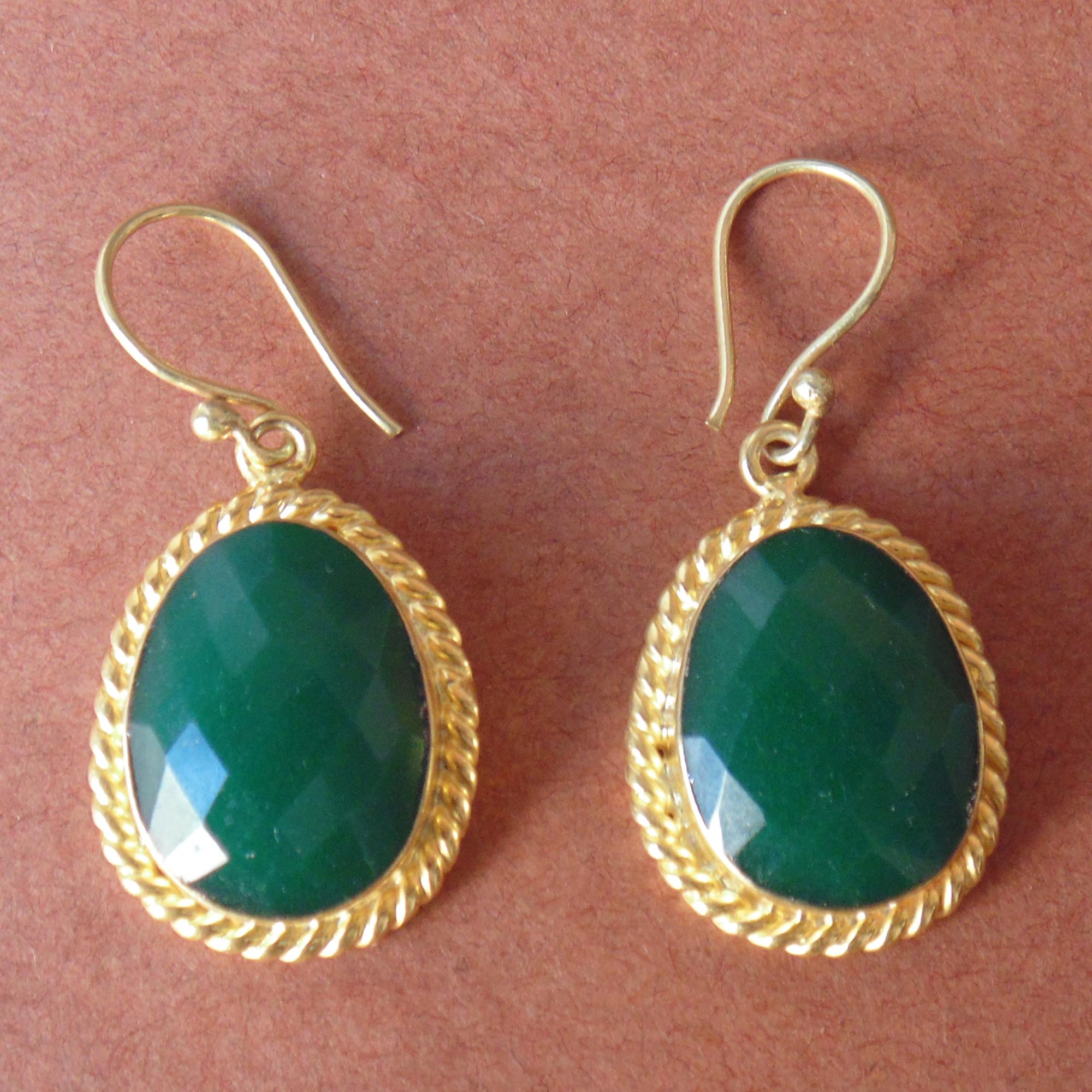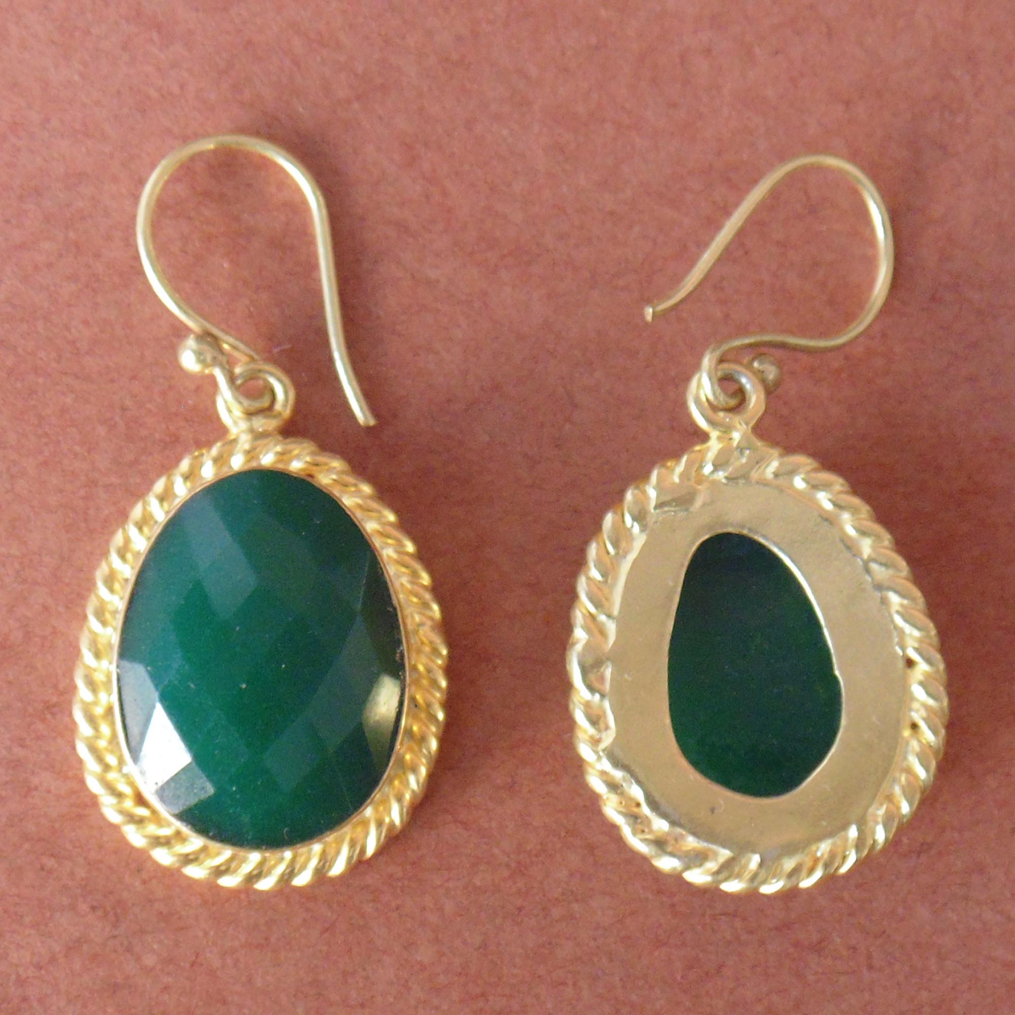 Complete your bridesmaid outfit with this unique faceted green onyx earrings. This gold plated bezel set earrings comes in a dainty design and is handcrafted to suit your taste.
