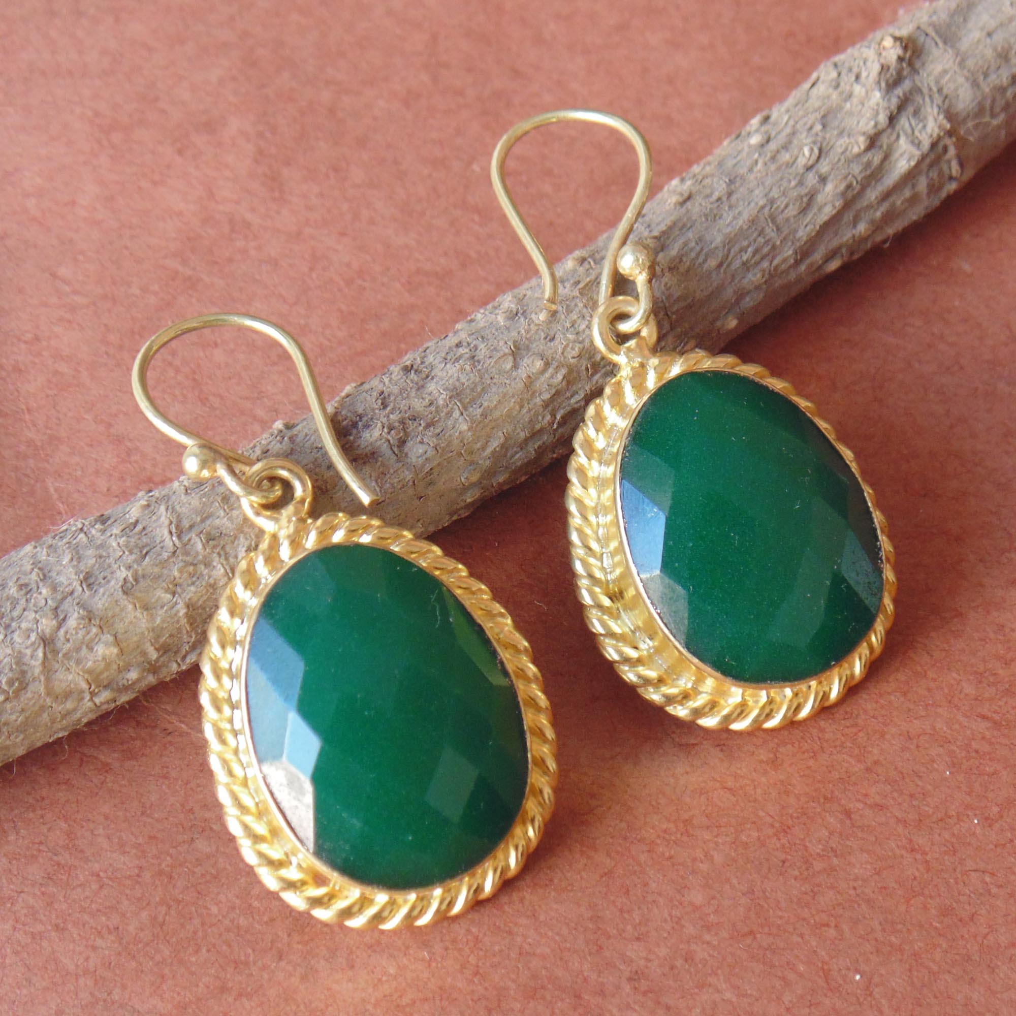 Natural Green Onyx Gemstone Drop Earrings For Women