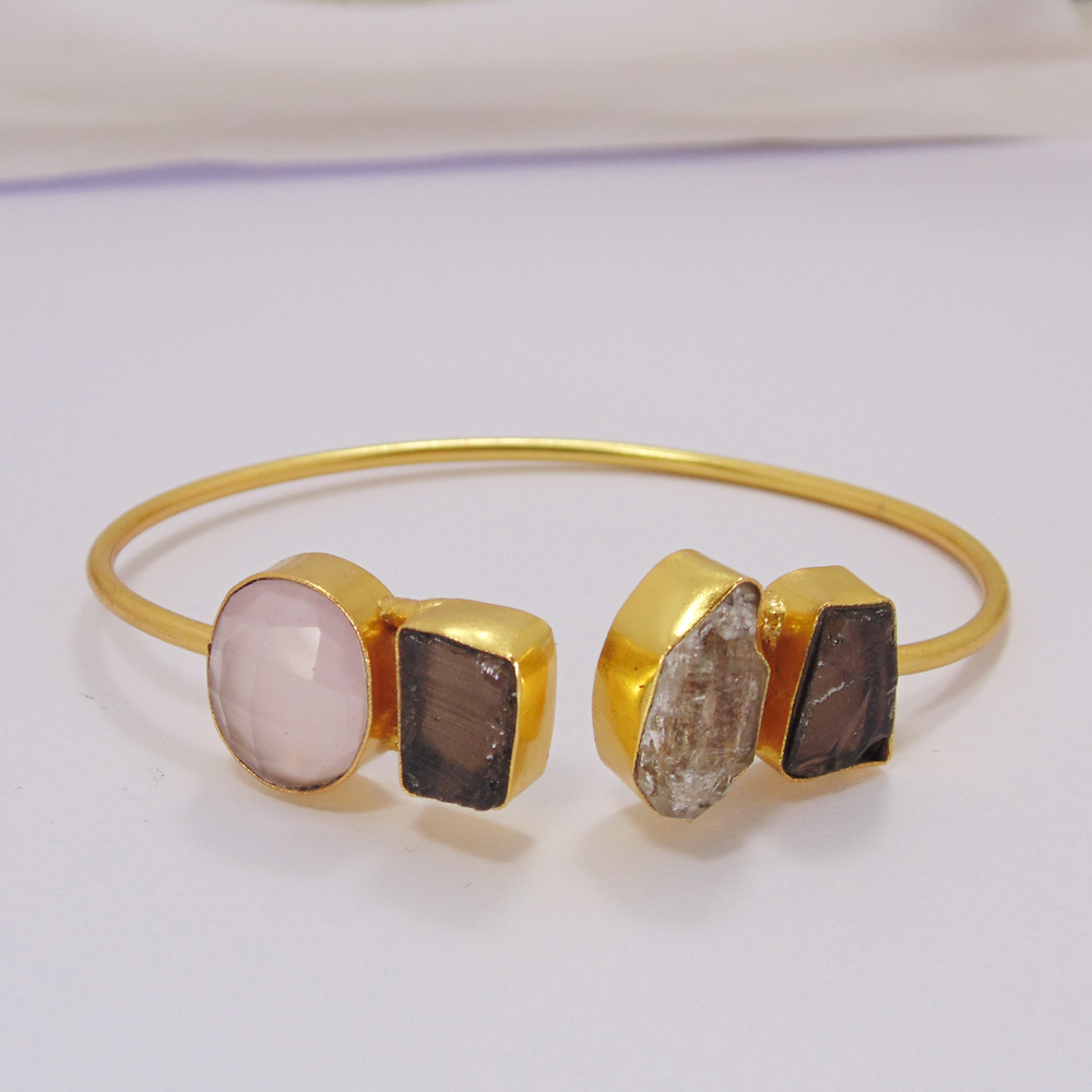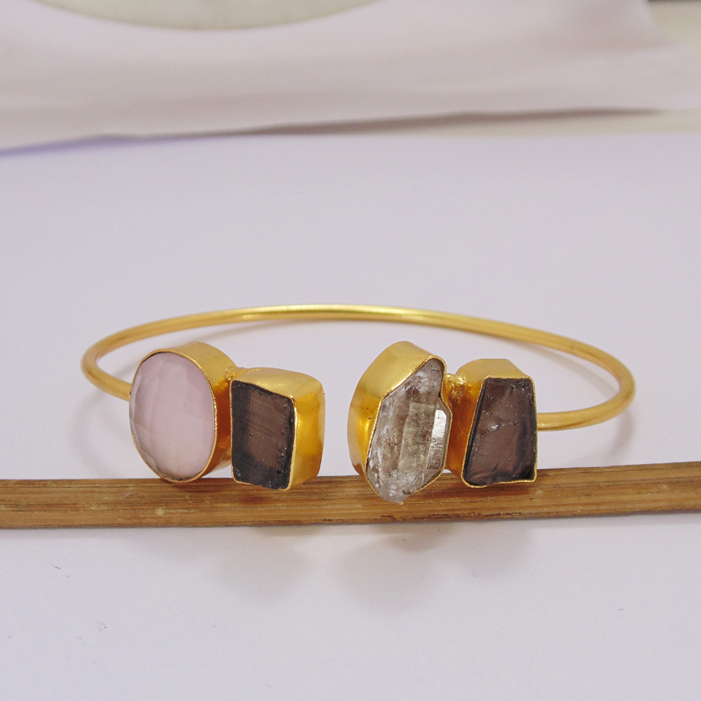Natural Stone Cuff Bangle - Handmade Bracelet Bangle - Smoky Quartz Stone Bangle - Designer Bangle for Women - Herkimer Diamond Cuff Bangle - Natural Gemstone Bangle - Best Valentines Gift