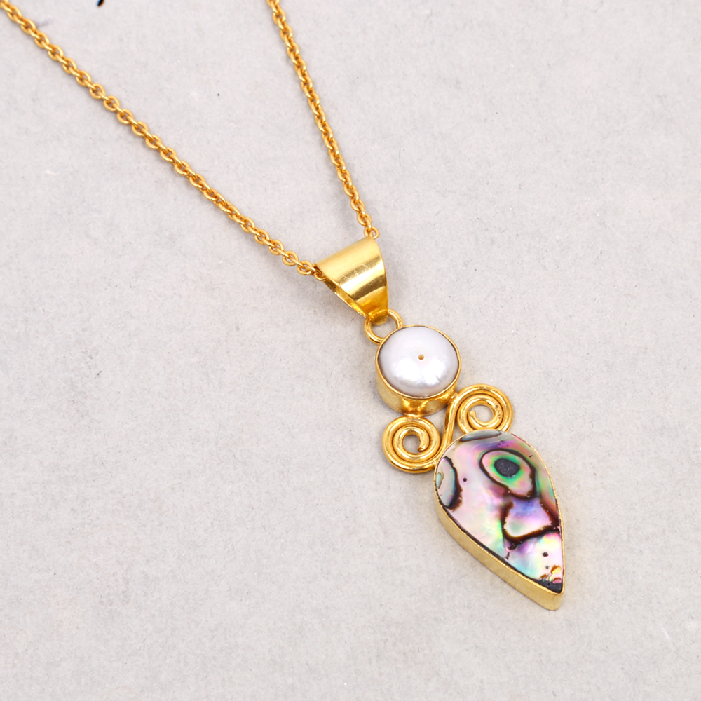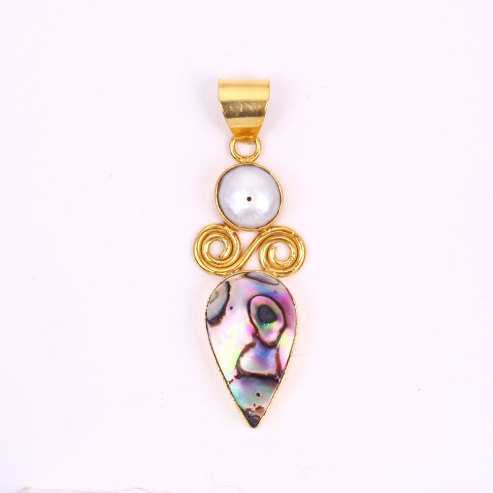 Beautiful Pendant for girls, Natural Abalone Shell Pendant, Fashion Pendant, Gold Plated Pendant, Pearl Stone Pendant, Gorgeous Pendant, Statement Pendant Jewelry