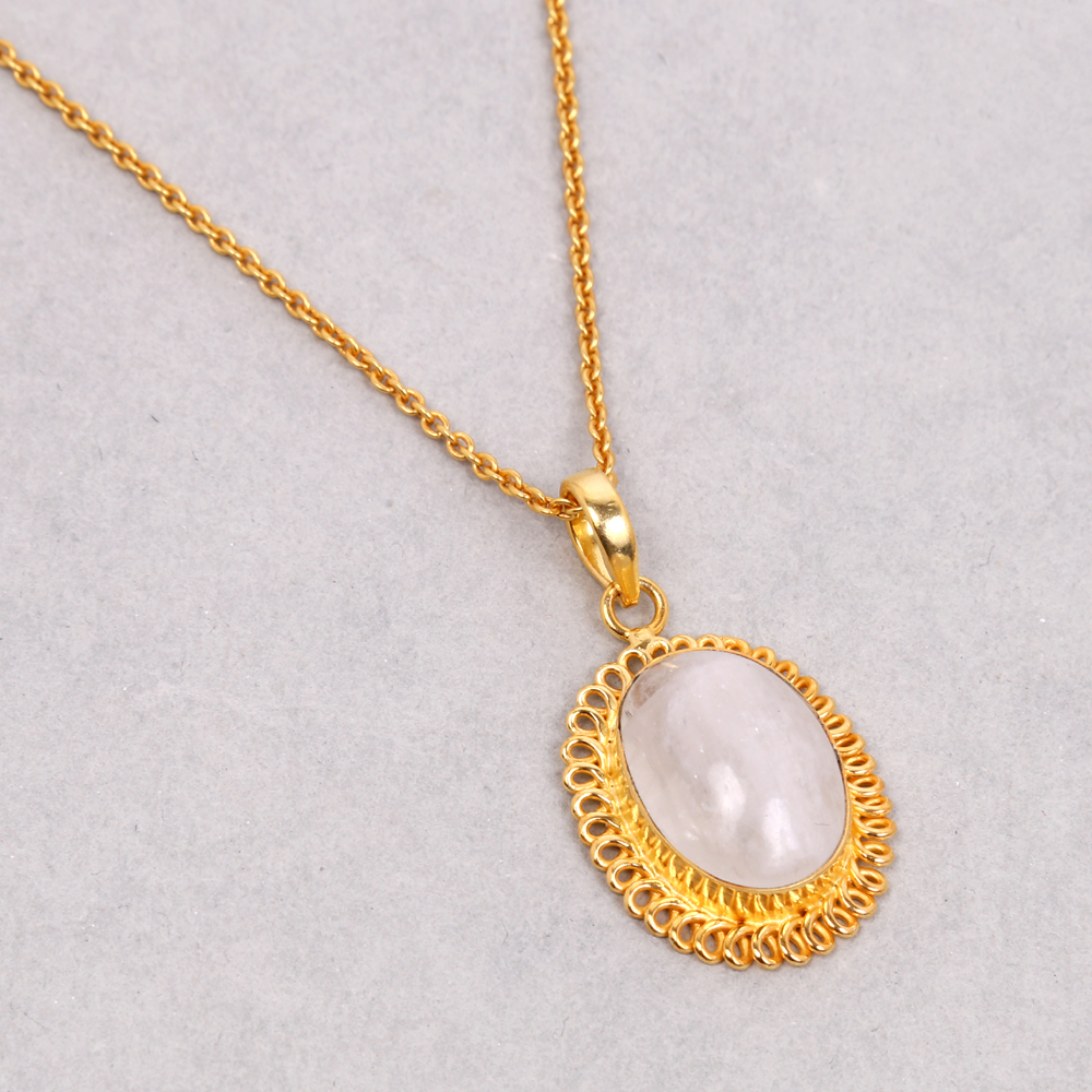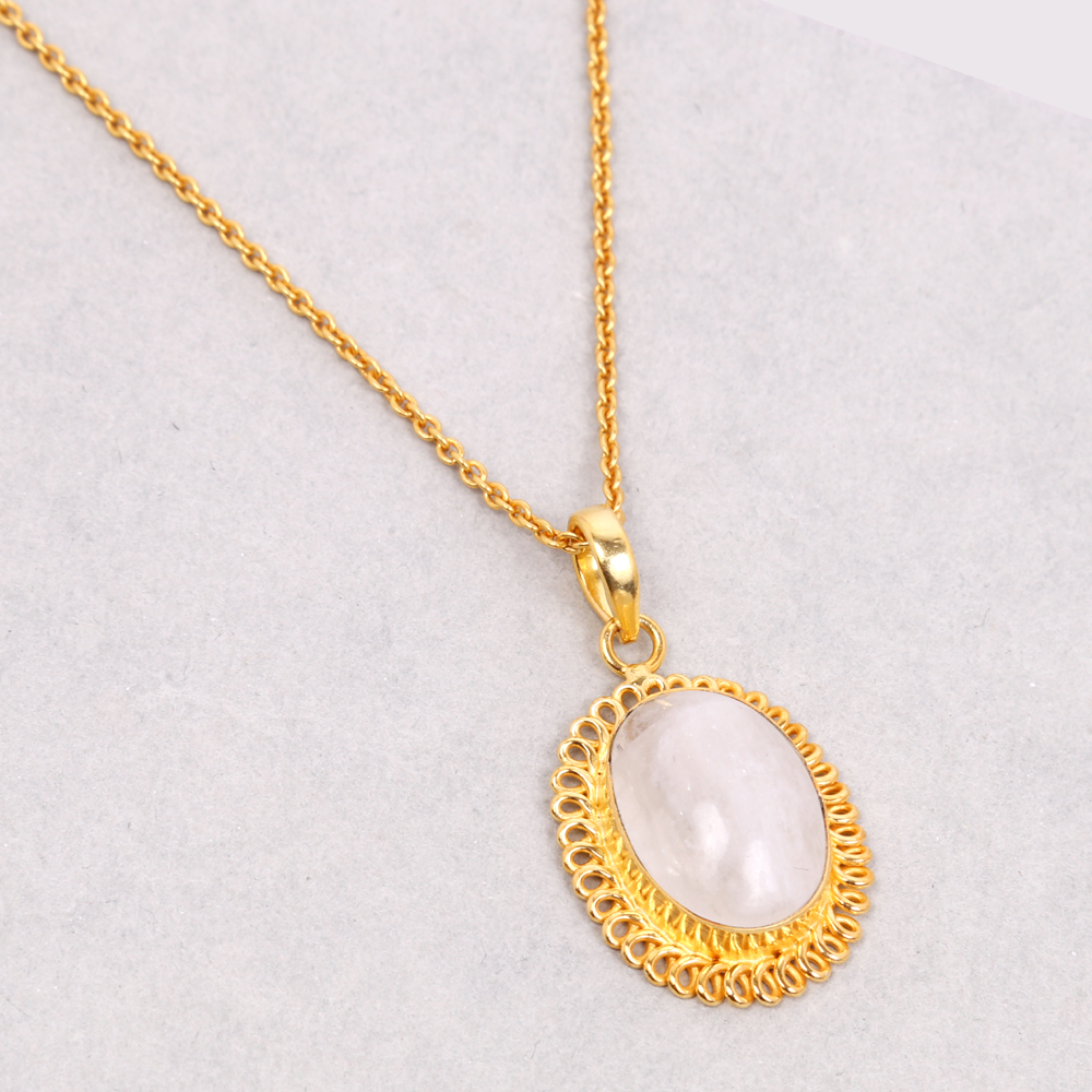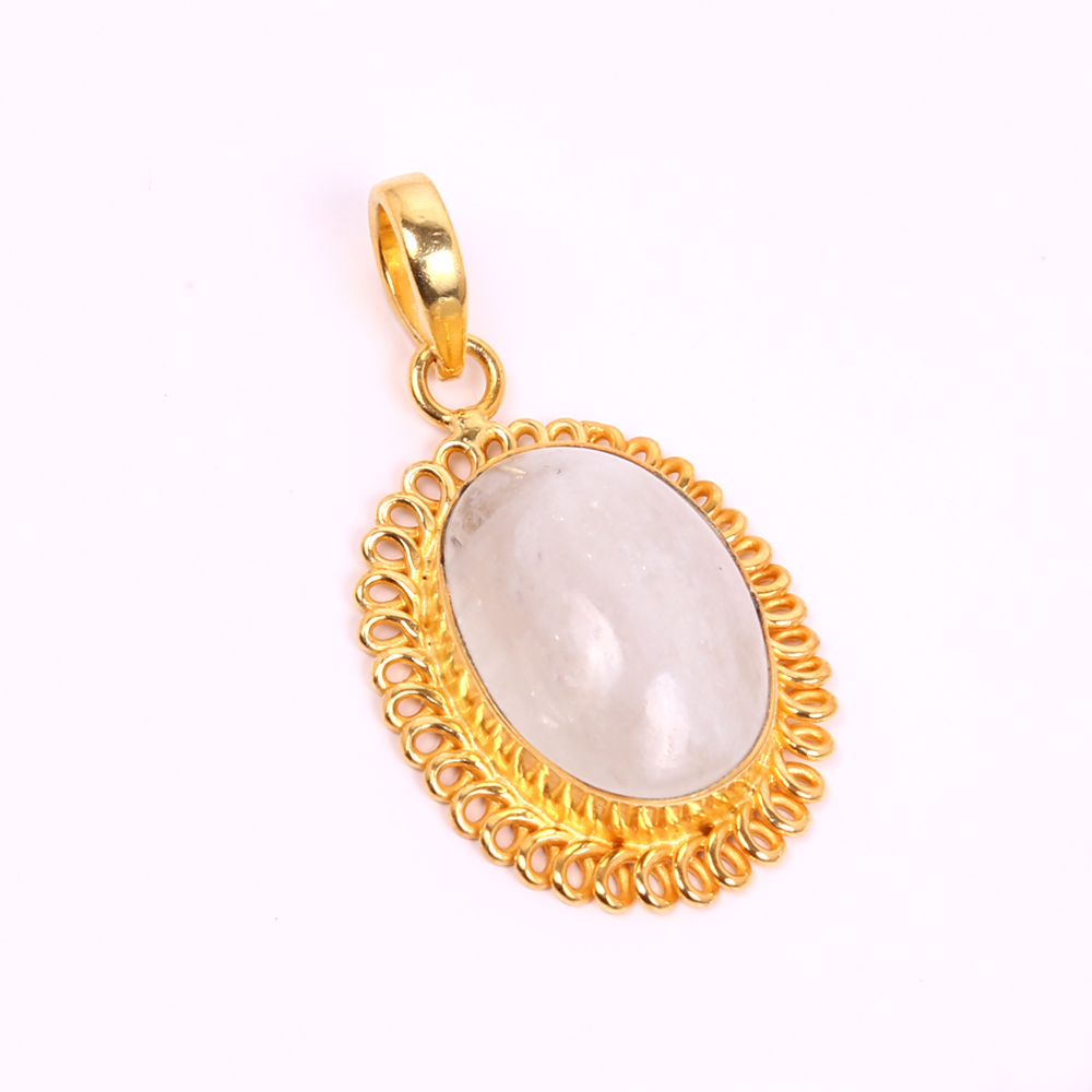 Indian Designer Gold Plated Brass Rainbow Moonstone Artisan Pendant