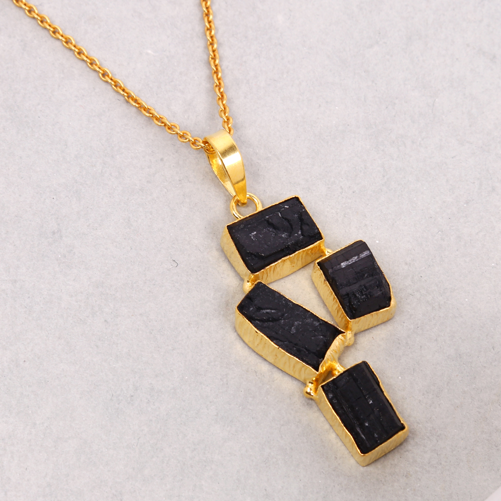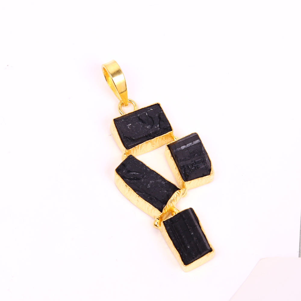Black Tourmaline Healing Gemstone Gold Plated Brass Fashion Pendant
