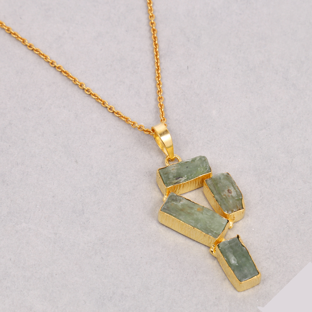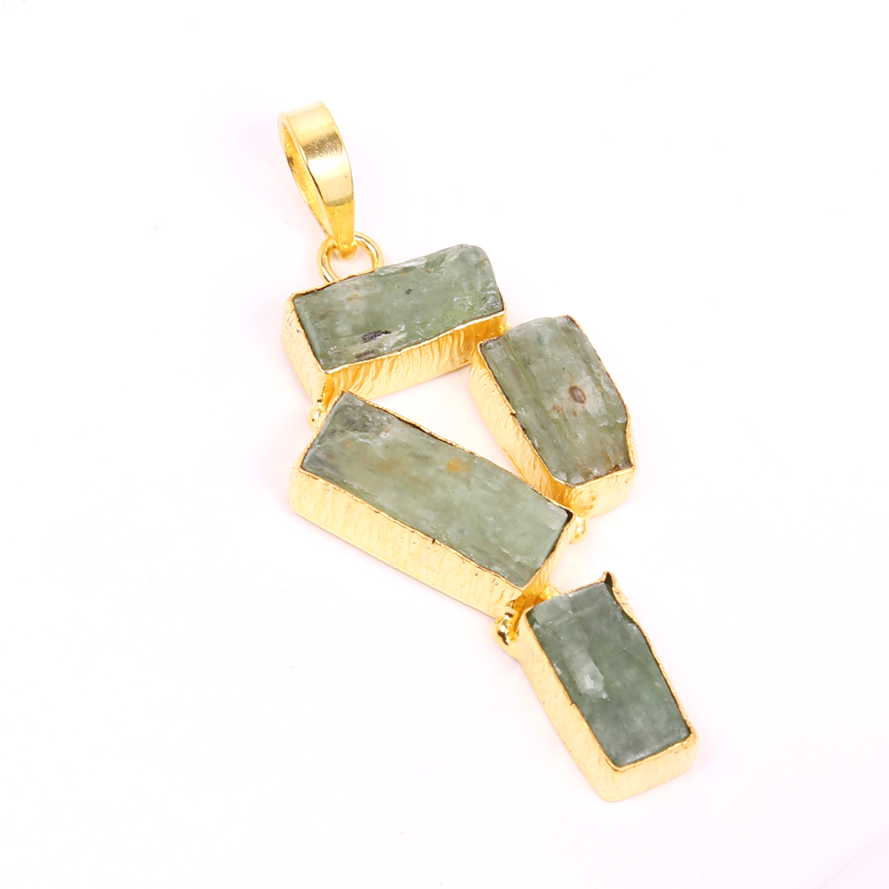 Indian Handmade Green Kyanite Gemstone Gold Plated Brass Pendant