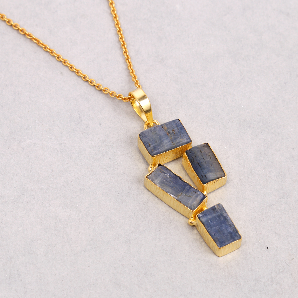 18K Gold Plated Pendant, Blue Kyanite Pendant, Brass Pendant, Crystal Pendant, High-Quality Pendant, Raw Gemstone Pendant, Best Gift For Her