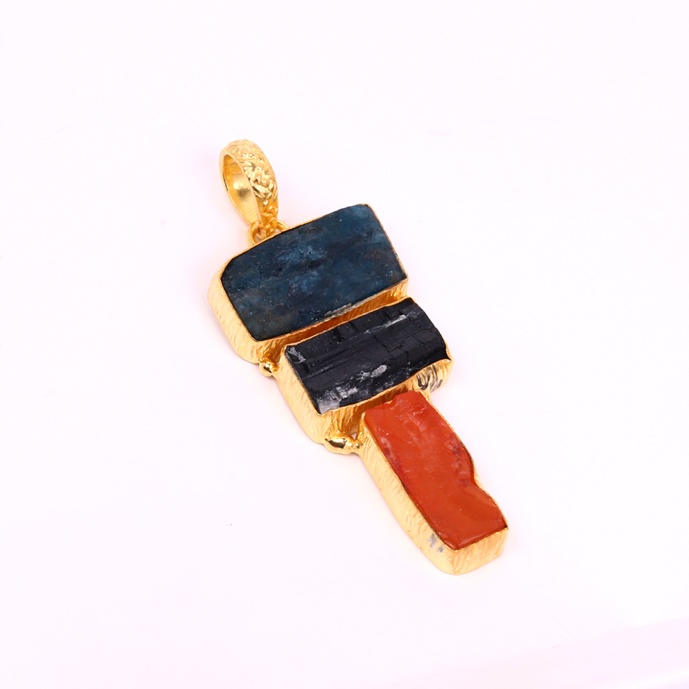 Handmade Gold Plated Brass Fashion Three Gemstone Pendant