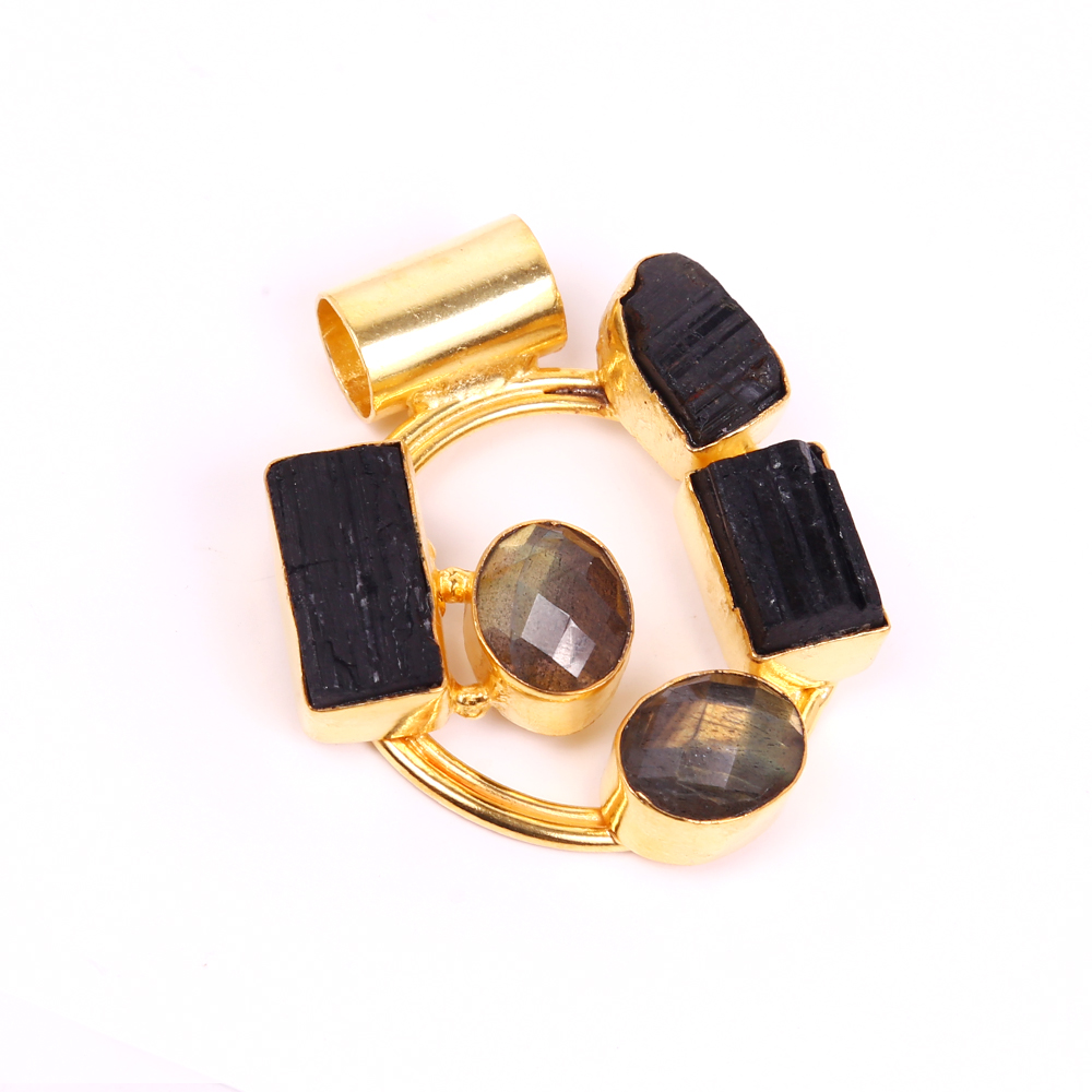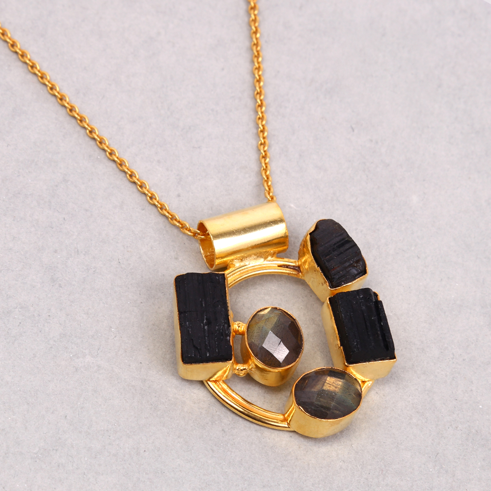 Handmade Pendant, Labradorite Pendant, Beautiful Stone Pendant, Gold Plated Pendant, Black Tourmaline Pendant, Designer Pendant