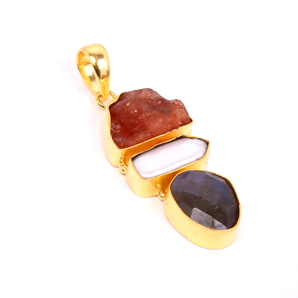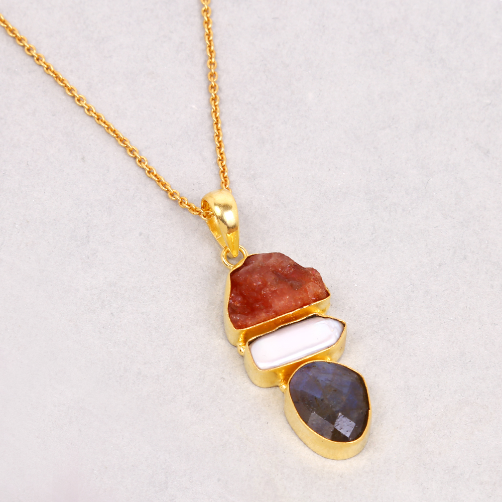 Natural Sunstone Pendant, Three Birthstone Pendant, Pearl Pendant, Labradorite Pendant, Three Stone Necklace For Her