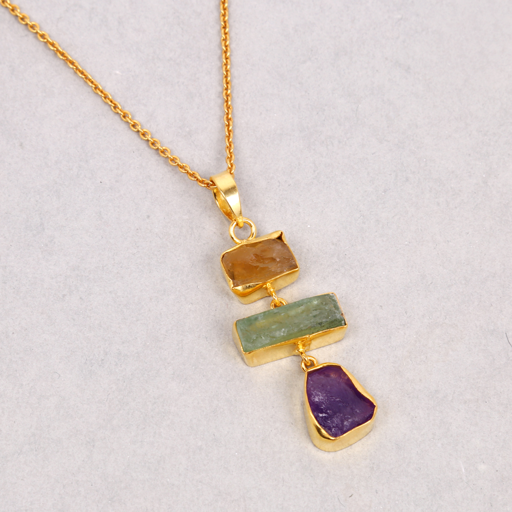 Citrine Birthstone Pendant, Handmade Pendant, Three Gemstone Pendant, Bezel set stone Pendant, Raw Amethyst Pendant, Crystal Healing Pendant