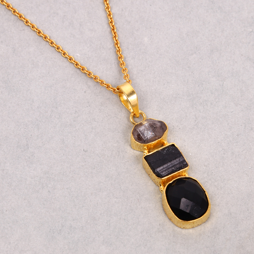 Handmade Brass Pendant, Herkimer Diamond Pendant, Mineral Stone Necklace, Gorgeous Pendant, Crystal Pendant, Onyx Pendant, Tourmaline Pendant