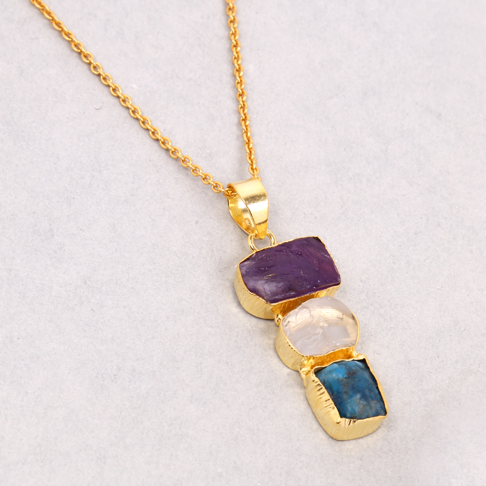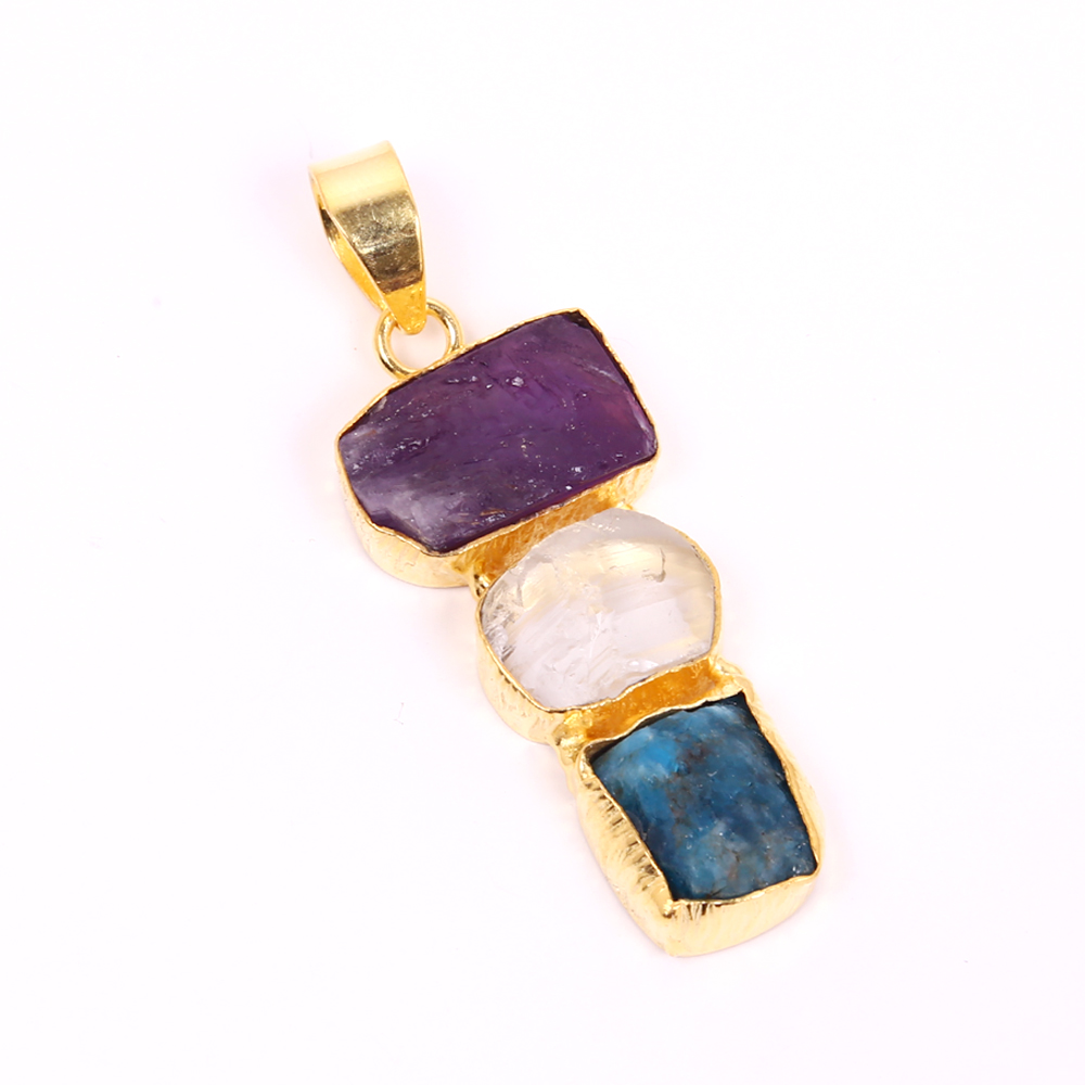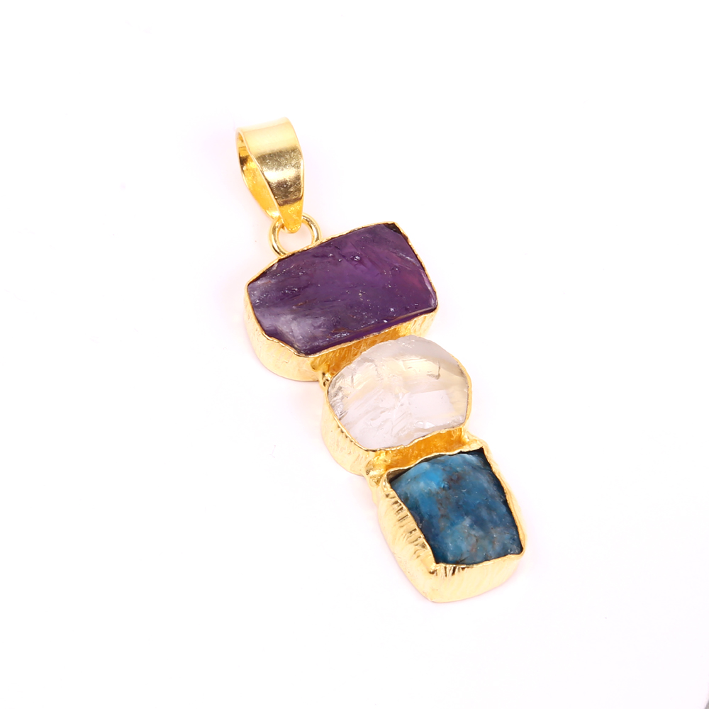 Amethyst, Apatite and Crystal Quartz Healing Gemstone Brass Fashion Pendant