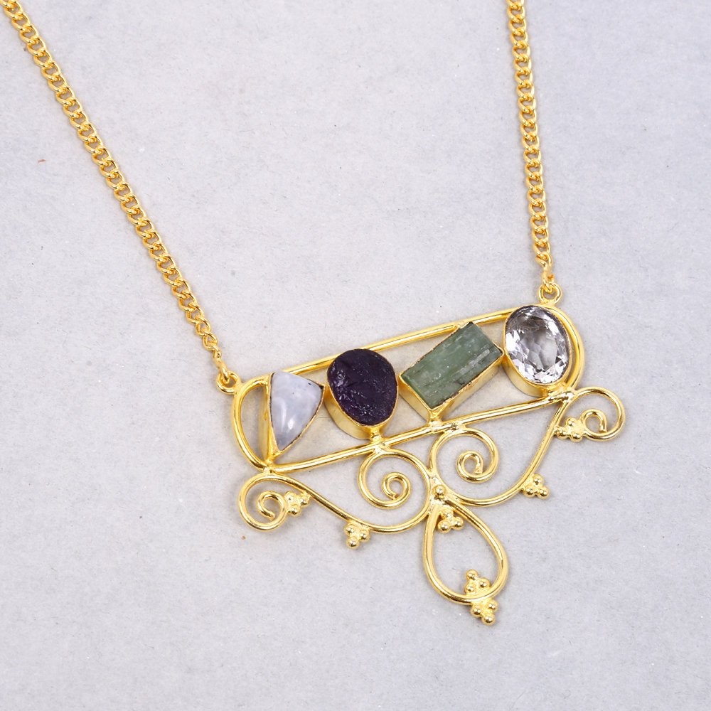 Handmade Multi-Gemstone Gold Plated Bridal Necklace For Women