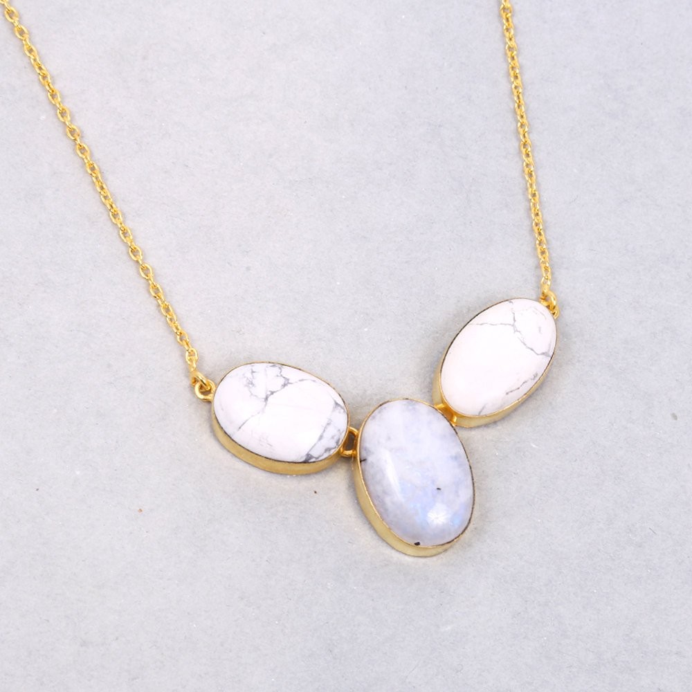 Handmade Gold Plated Chain Rainbow Moonstone Glamorous Necklace For Women