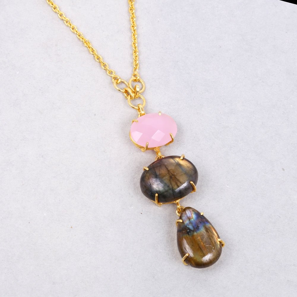 Handmade Gold Vermeil Labradorite Rose Quartz Necklace For Women