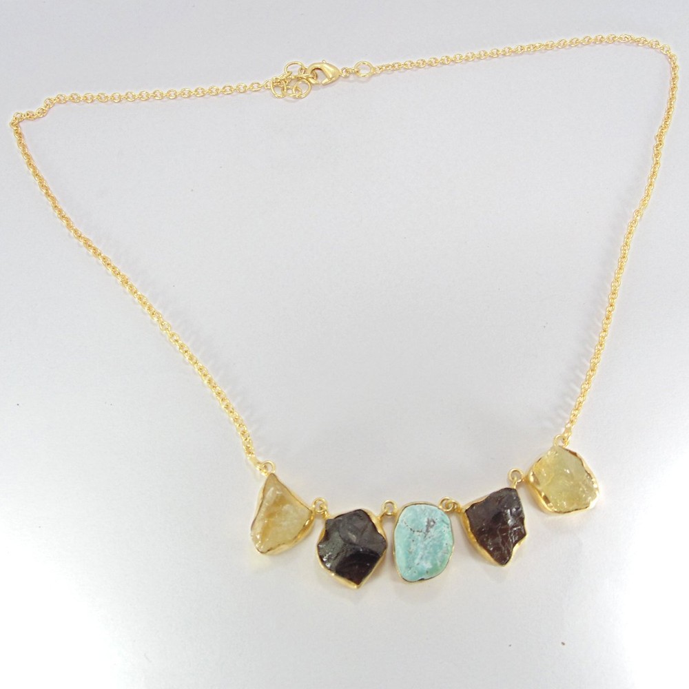 Product DetailsItem Code: VJMDBP-0008Gross Wt. 17.740 GmsStone Name: Turquoise, Smoky Quartz And Citrineetal: 18K Yellow Gold Plated Over Brass