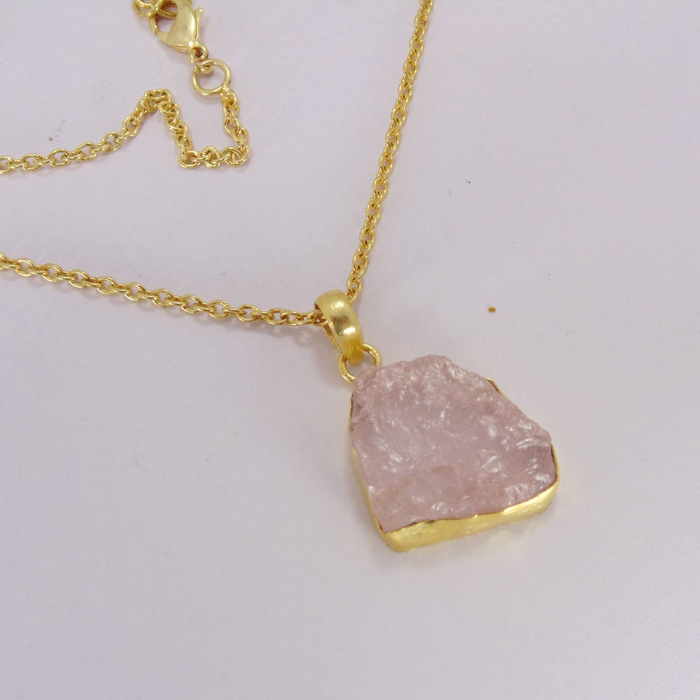 18K Gold Plated Rose Quartz Love Stone Necklace For Women