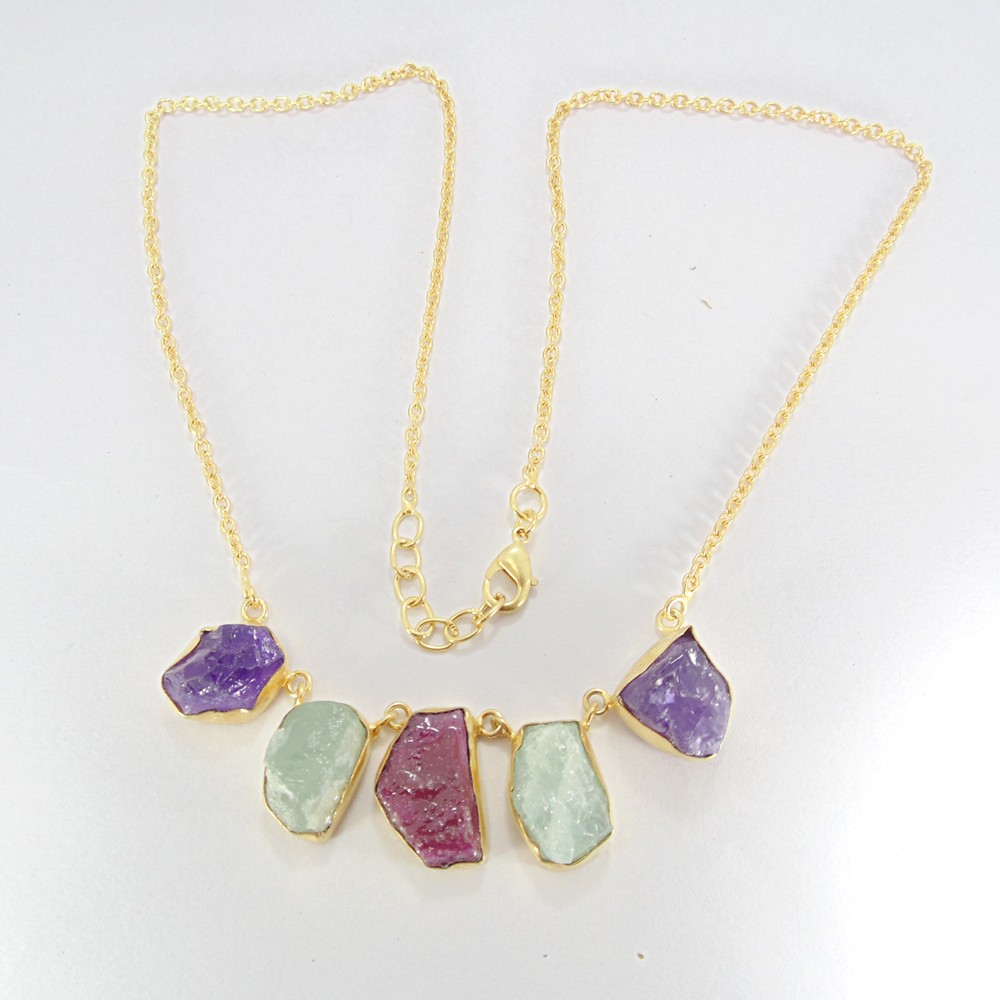 Product DetailsItem Code: VJMDBP-0006Gross Wt. 18.540 GmsStone Name: Amethyst, Aquamarine, RubyMetal: 18K Yellow Gold Plated Over BrassNecklace Size: 16" inch length and 3 inch extension.