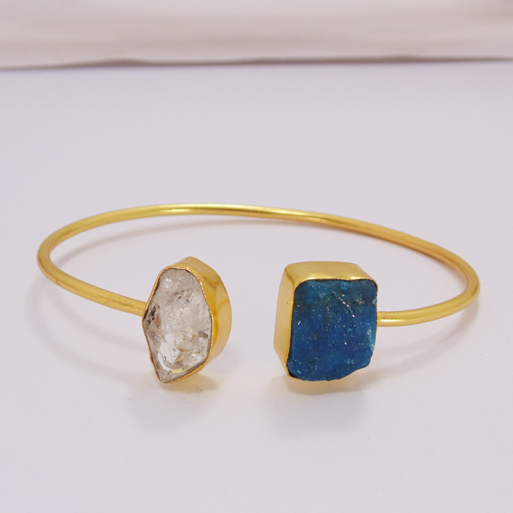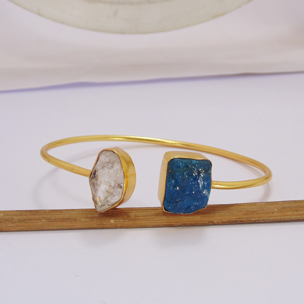 18k Gold Plated Bangle - Apatite Stone Bangle - Natural Stone Cuff Bangle - Herkimer Diamond Sleek Bangle - Handmade Fashion Bangle - Stackable Cuff Bangle - Best Valentines Gift