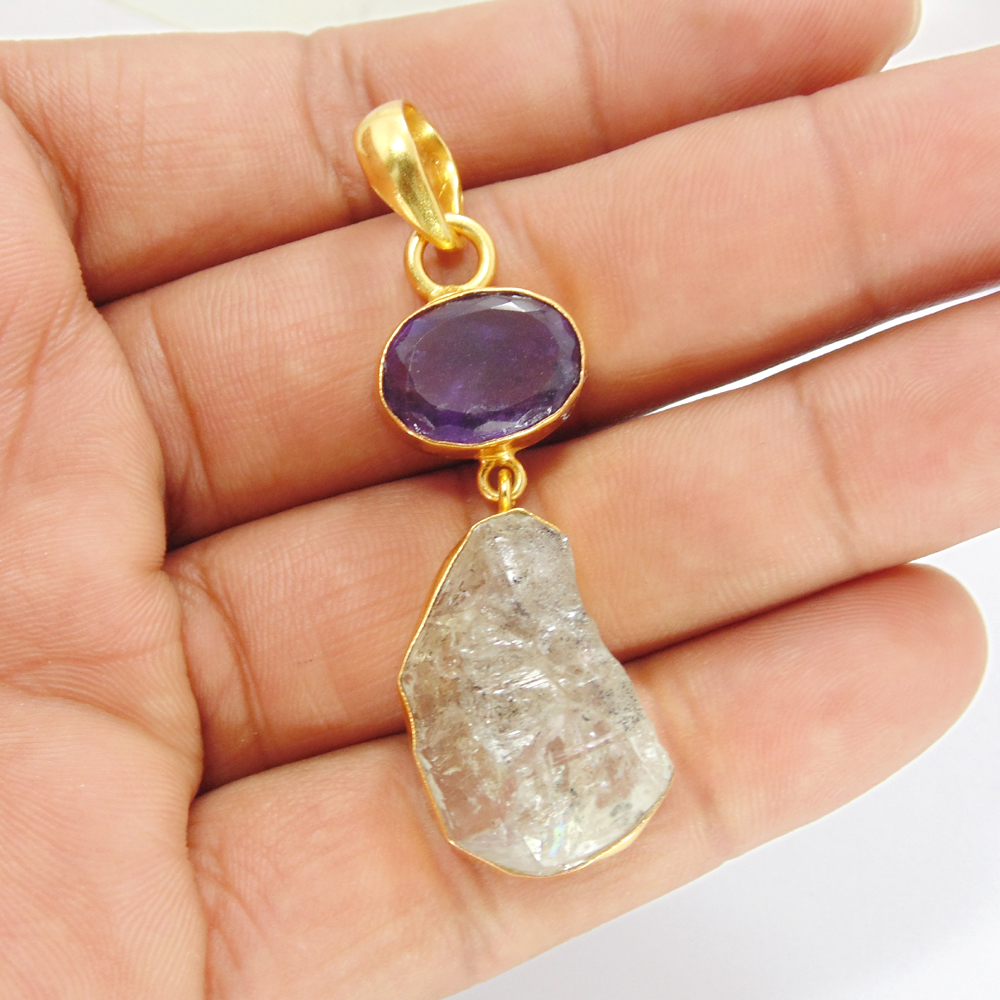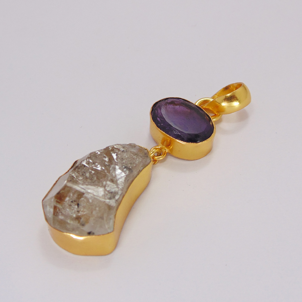 Amethyst Gemstone and Herkimer Diamond Artisan Pendant