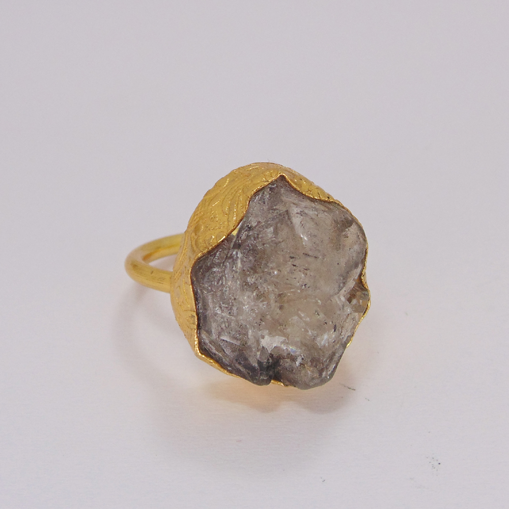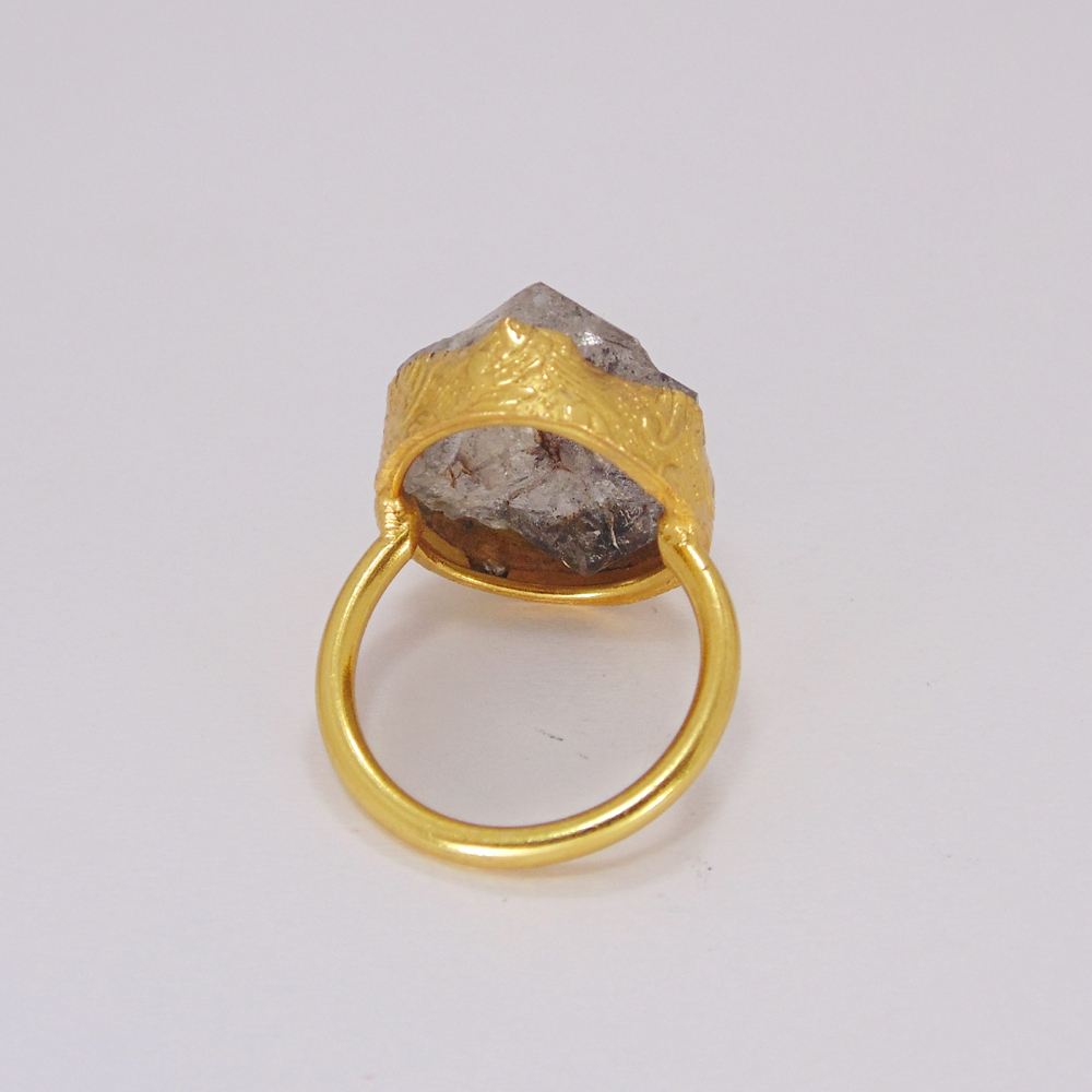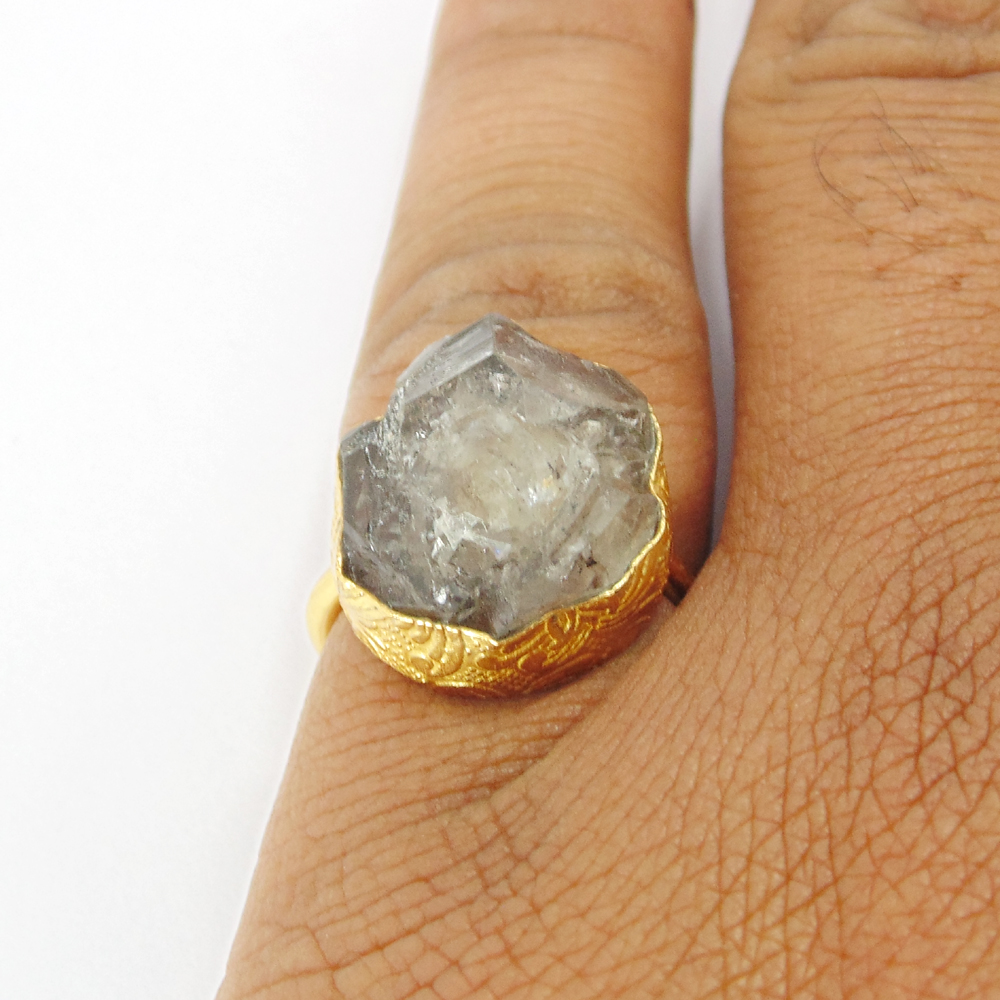 Natural Stone Ring - Herkimer Diamond Ring - April Birthstone Ring - Gold Plated Ring - Artisan Ring - Designer Ring Jewelry - Valentines Day Gift