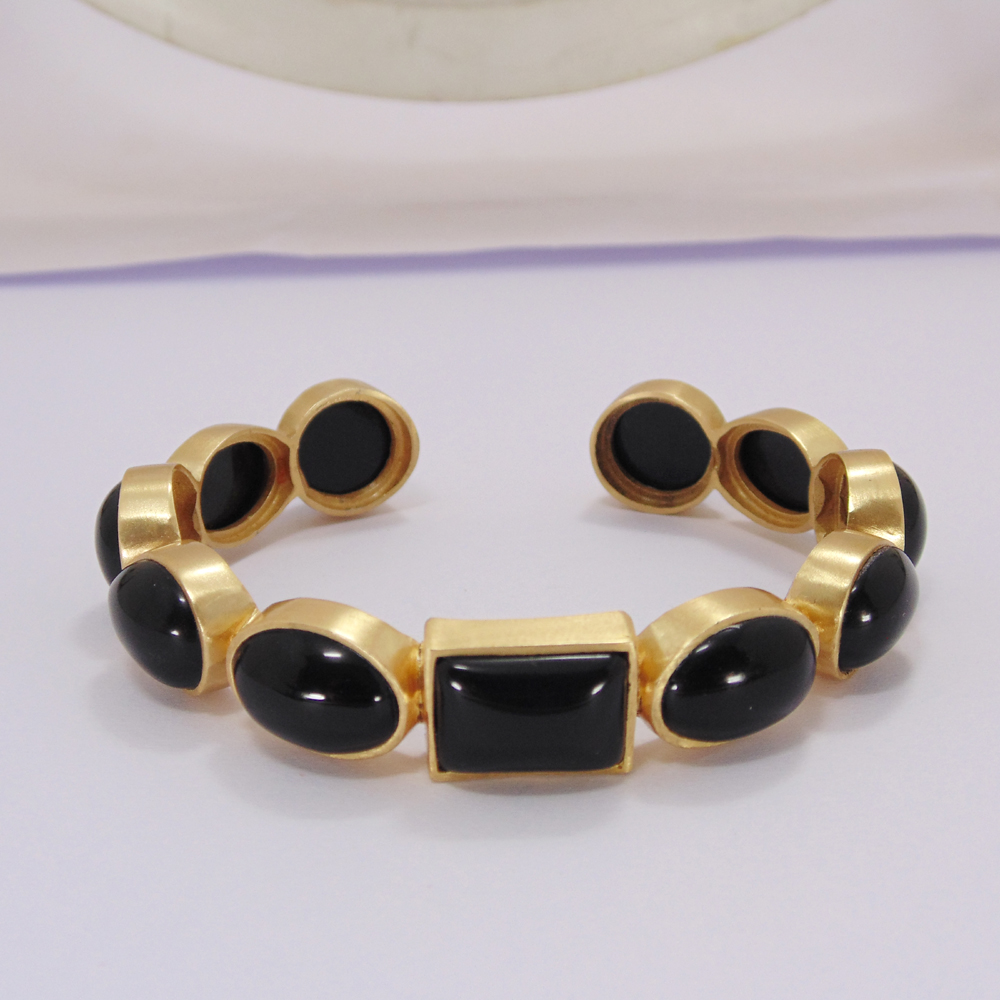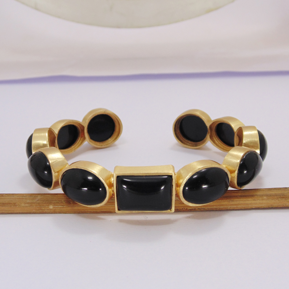 Genuine Black Onyx Gemstone Gold Plated Brass Fashion Adjustable Bangle
