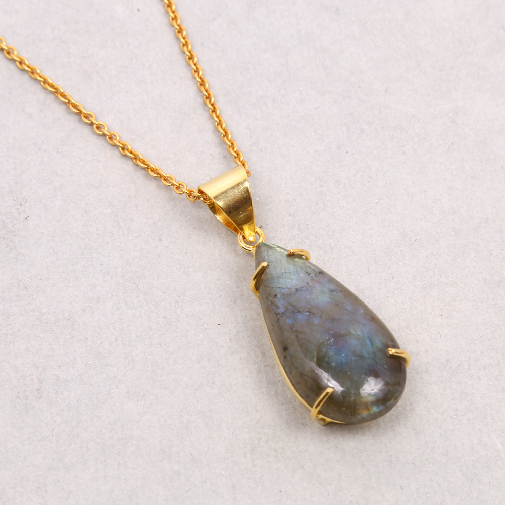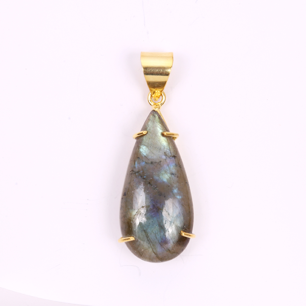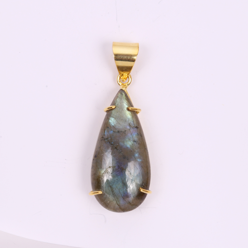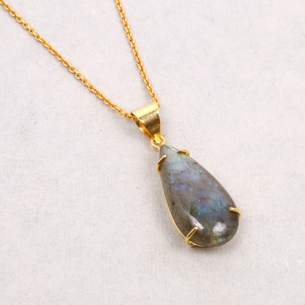 Handmade Prong Set Labradorite Gemstone Artisan Gold Plated Pendant