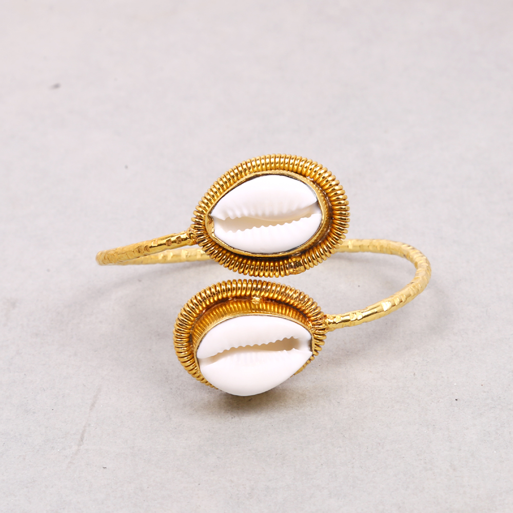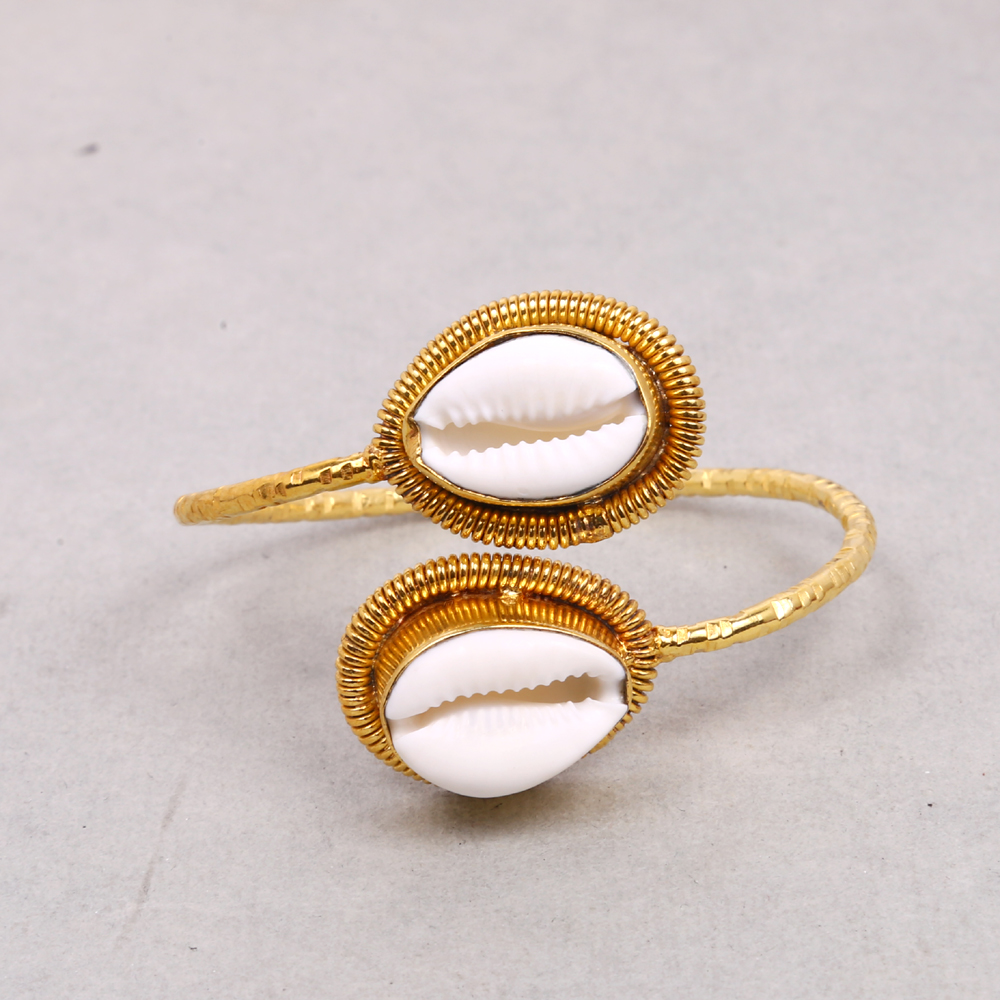 Indian Handcrafted Gold Plated Brass Fashion Cowri Cuff Bangle