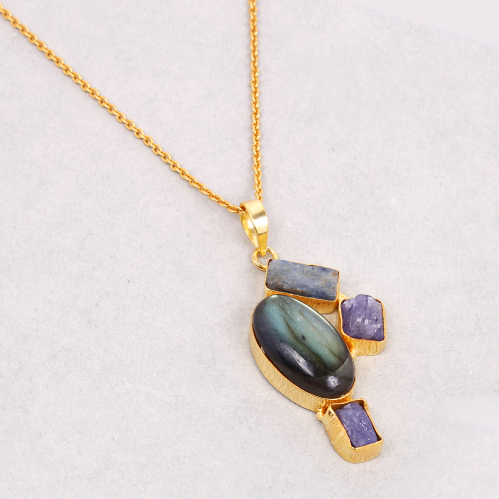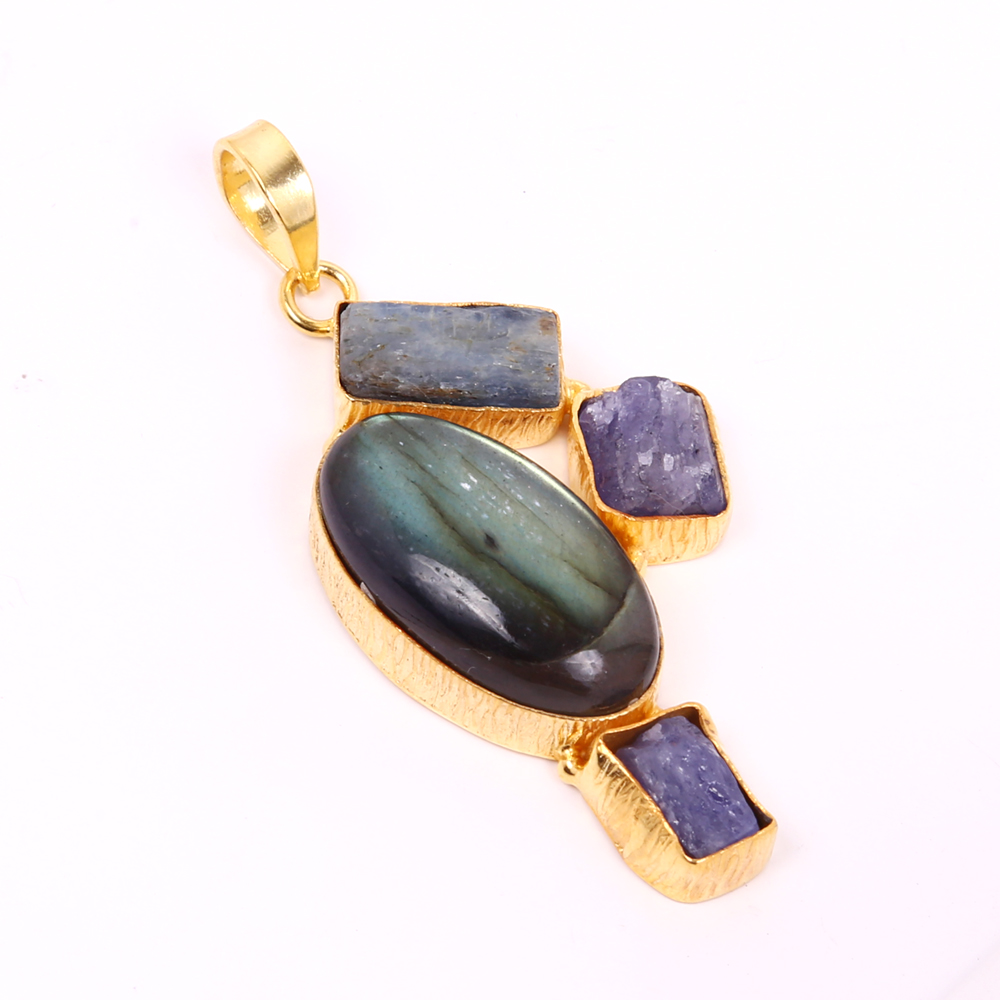 Natural Labradorite Semi Precious Gemstone Gold Plated Brass Fashion Pendant