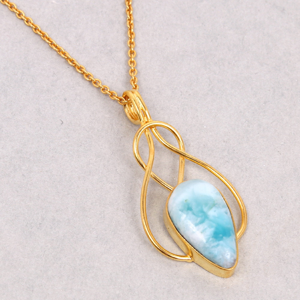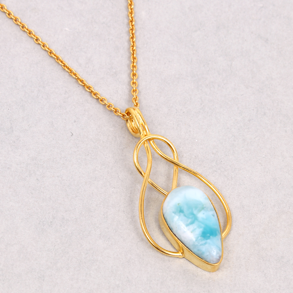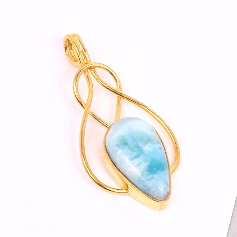 Natural Larimar Gemstone Designer Gold Plated Brass Fashion Pendant