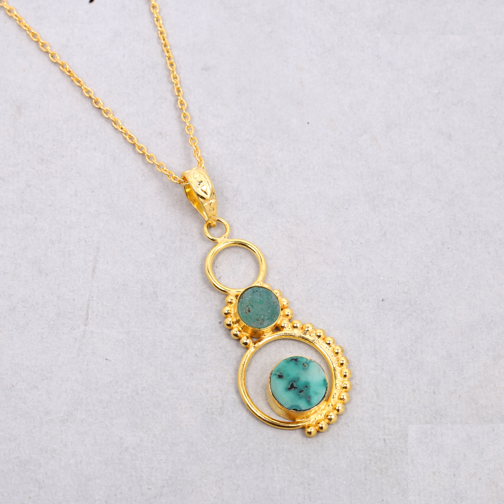 Natural Turquoise And Green Druzy Beautiful Designer Pendant With Chain