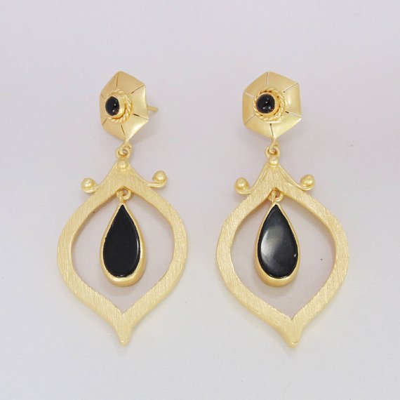 Black Onyx Earrings - Handmade Earring - Stylish Earrings - Bezel Set Earring - Dangle Earrings - Solid Brass Earrings - Wedding Earrings