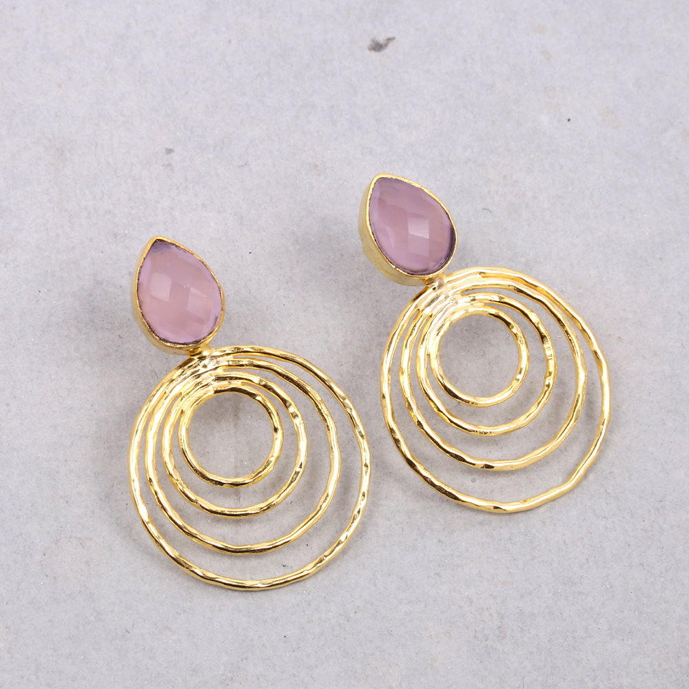 Handmade Rose Quartz Gemstone High Fashion Circle Post Stud Earrings