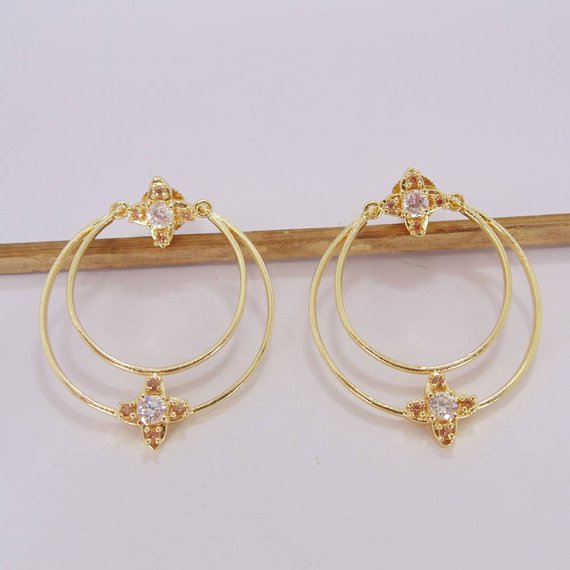 Cubic Zirconia Earrings - Handmade Earrings - Round Circle Earrings - Gold Plated Earrings - Designer Earrings - Wedding Earrings