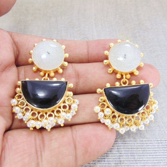 Designer Solor Quartz And Black Onyx Gemstone Earrings
