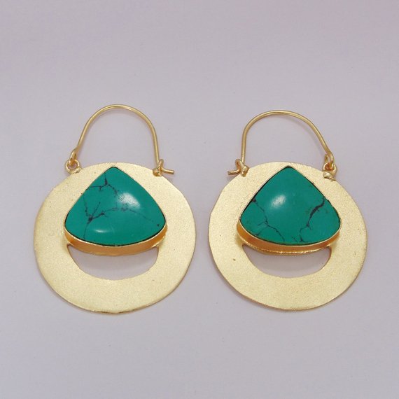 Designer Handmade Turquoise Gemstone Gold Plated Hook Earring