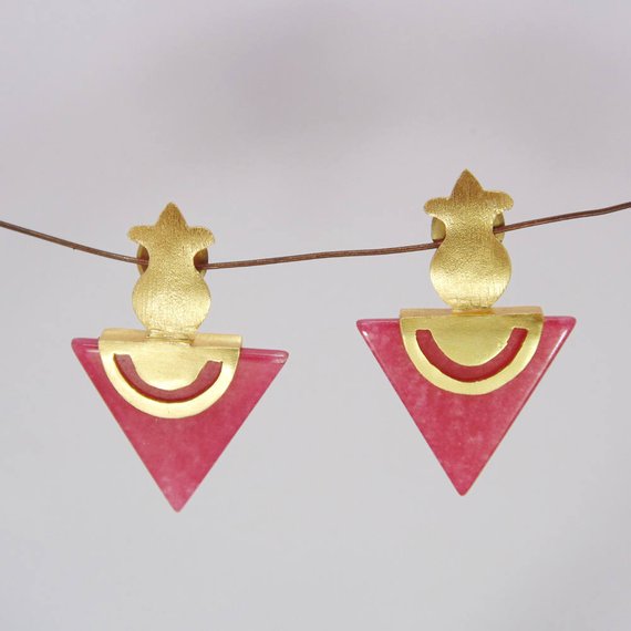 18k Gold Plated Earrings - Red Aventurine Earrings - Triangle Earrings - Stylish Earrings - Girl Studs Earrings - Unique Christmas Gift